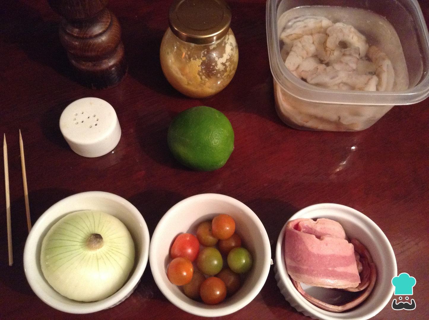 El primer paso para realizar esta receta es prealistar los ingredientes de nuestras brochetas de langostinos.