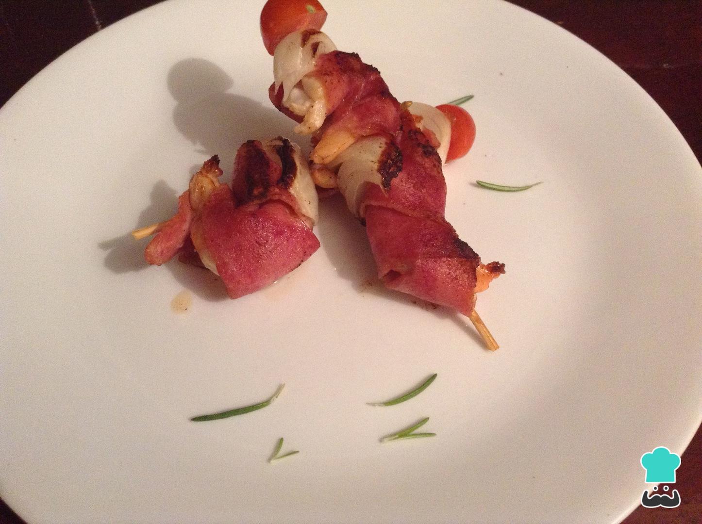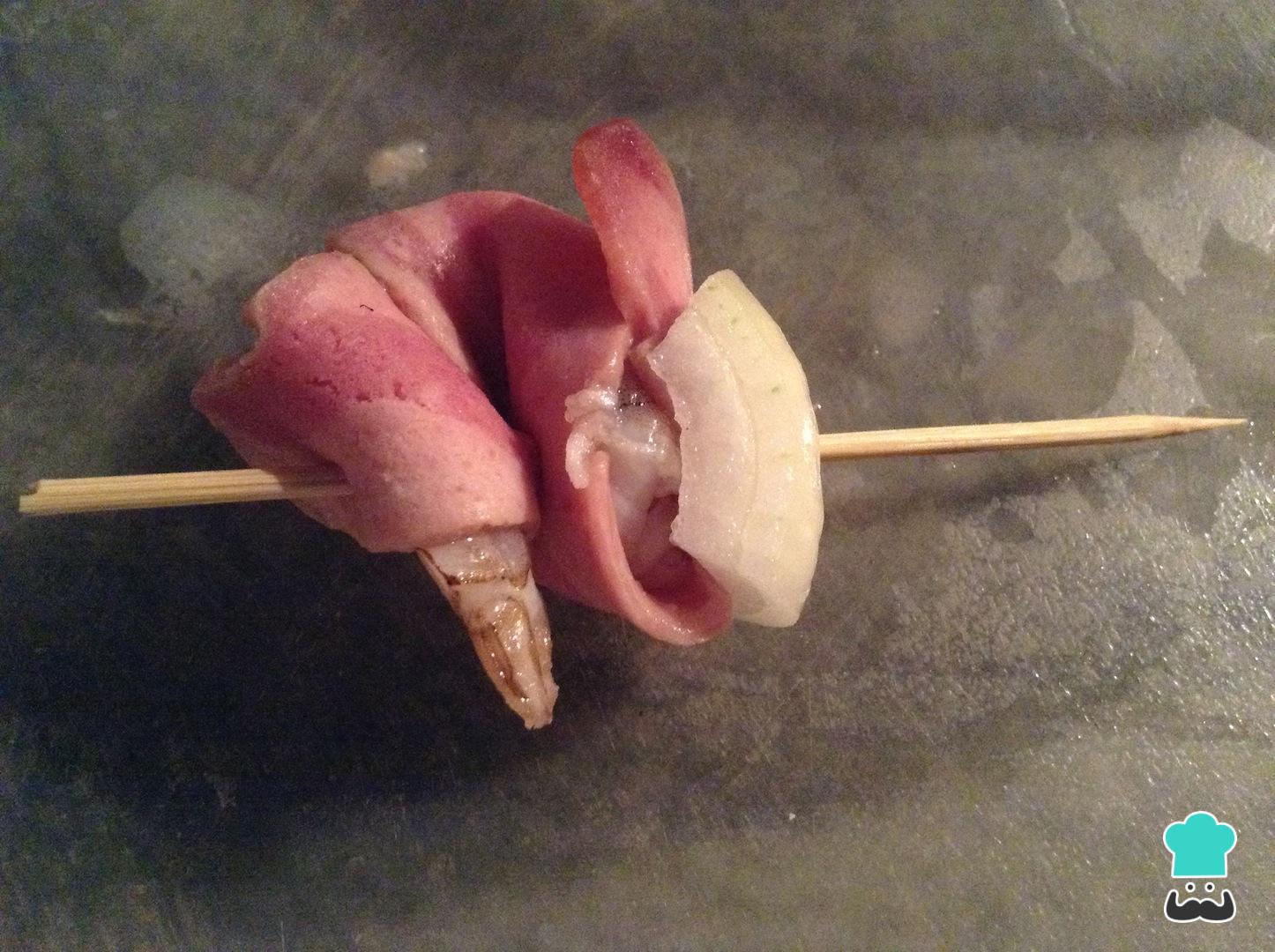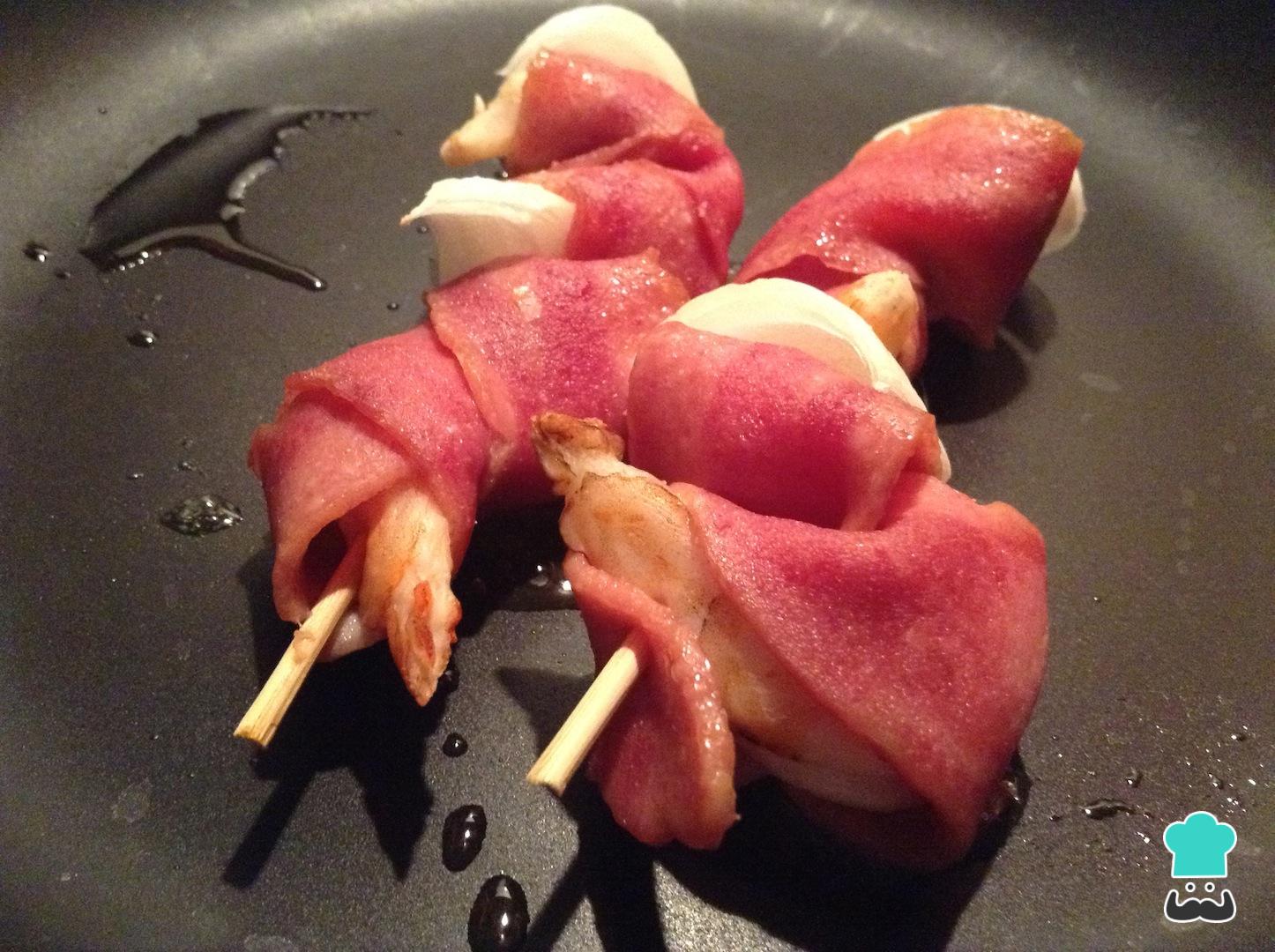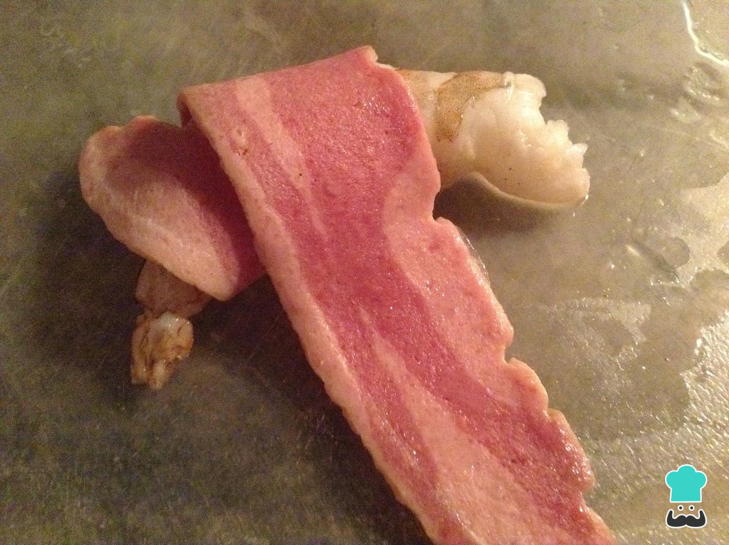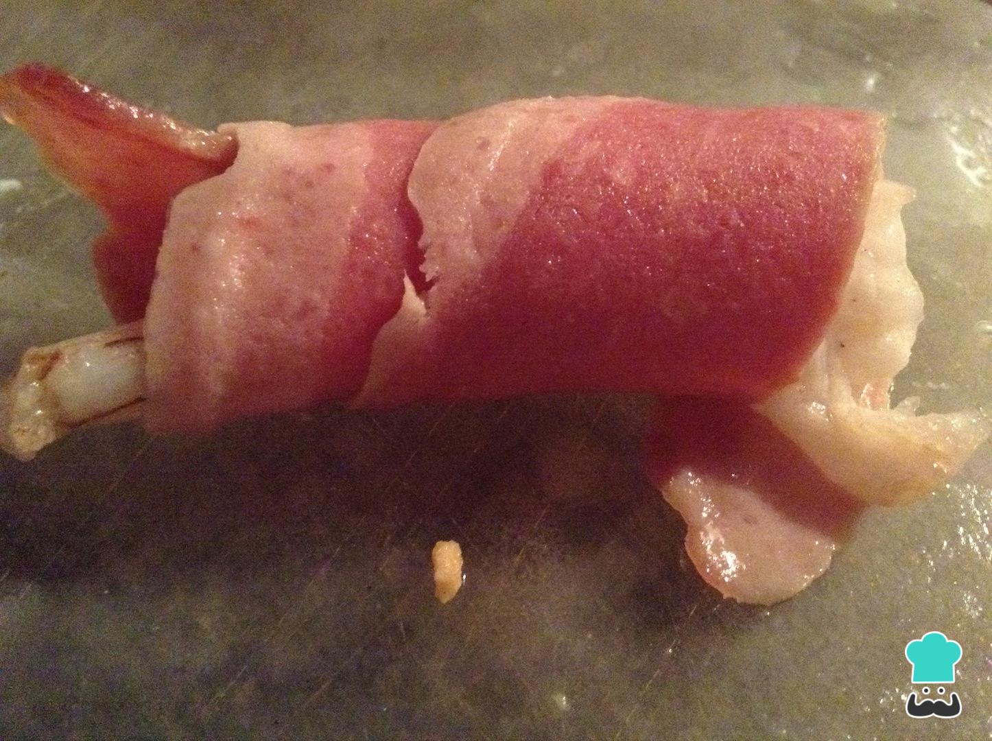 Es importante que nuestro langostino quede bien envuelto en el bacon como se observa en la fotografía.