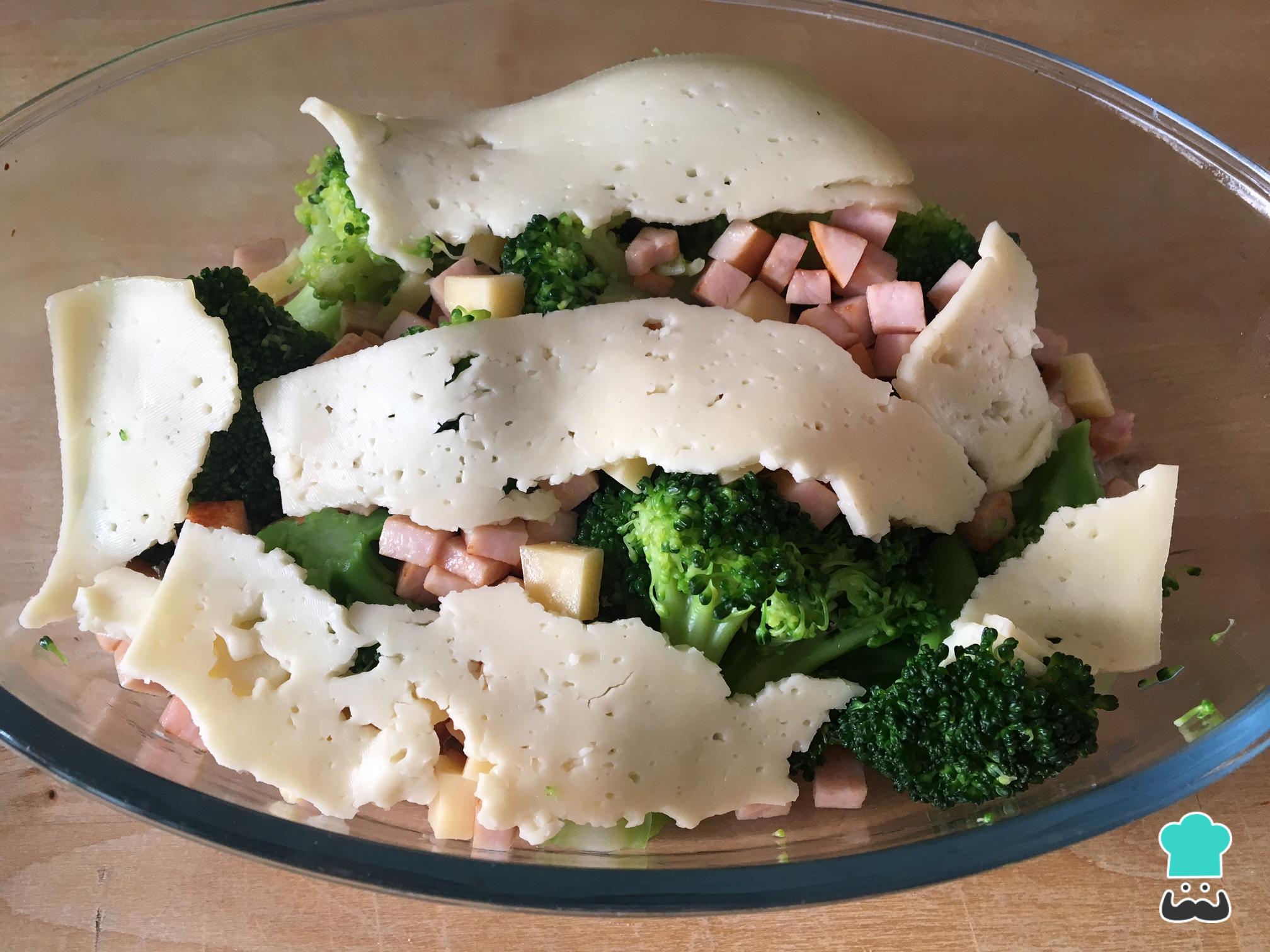 Colocamos el brócoli y el jamón cocido en una fuente para horno, salpimentamos y ponemos un poco de aceite de oliva. Esta receta de brócoli con jamón y queso está lista en pocos minutos y puede salvar tus cenas.