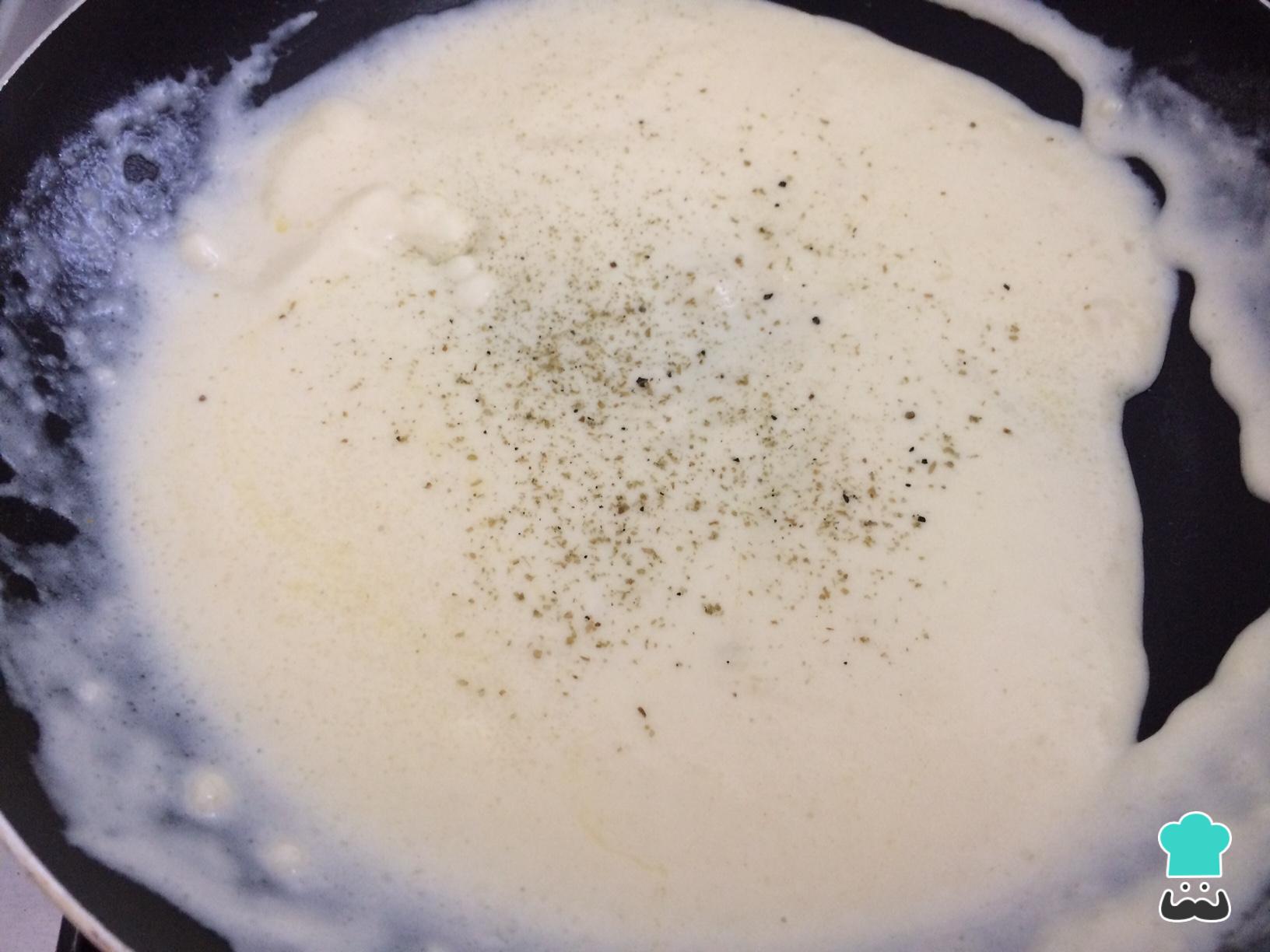 Agrega también la leche poco a poco y continúa con la cocción a fuego bajo, revolviendo constantemente hasta obtener una salsa suave y homogénea. En este punto, salpimienta al gusto.