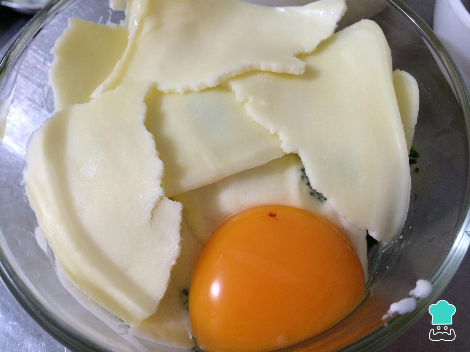 Finalmente, añade el huevo entero, salpimienta nuevamente si es necesario y añade por encima las láminas de queso mozzarella. Hornea el brócoli con queso y huevo a 180 °C durante 10 minutos.