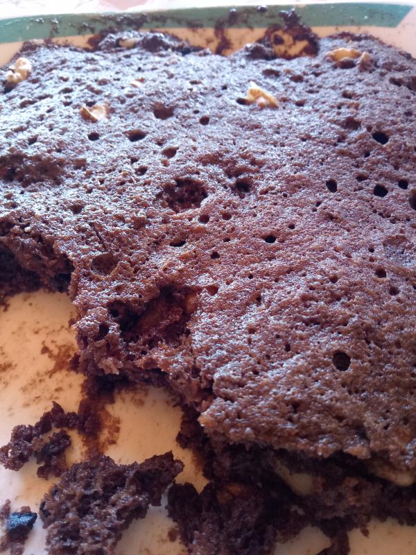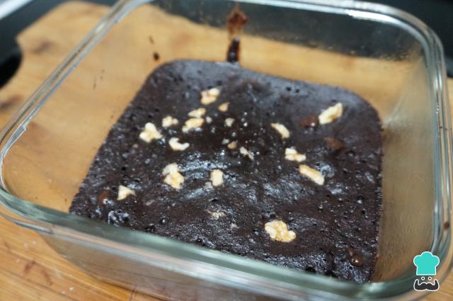 Introduce el brownie de chocolate en el microondas a 900W. unos 90 segundos aproximadamente. Seguido, retira y, si observas que aún no está, añádelo de 20 en 20 segundos. Pueden variar los tiempos según el microondas. El bizcocho debe quedar un poco húmedo, ya que al enfriarse se quedará más seco.