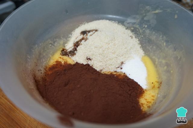 Para empezar con la receta de brownie keto al microondas, primero debes añadir los ingredientes secos en un bol: la almendra molida, el cacao en polvo, el eritritol o cualquier azúcar que te guste, también la cucharadita de polvo de hornear. Añade también los huevos y mezcla todo. A continuación, introduce la mantequilla unos segundos en el microondas y, una vez derretida, incorpora con los otros ingredientes. Mezcla con unas varillas o con una espátula.