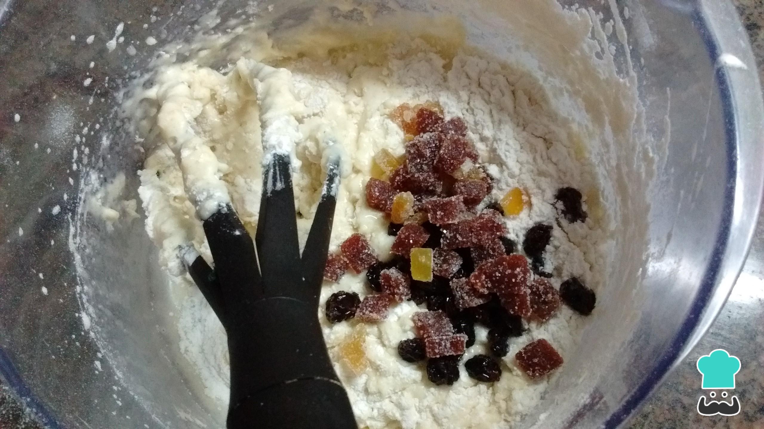 Una vez que estén los ingredientes casi integrados por completo, agrega las frutas, con una cucharada del licor, si deseas sentir su sabor un poco más intensamente en la preparación final. Intégralas con movimientos envolventes, sin sobrebatir, como explicamos en el punto anterior.