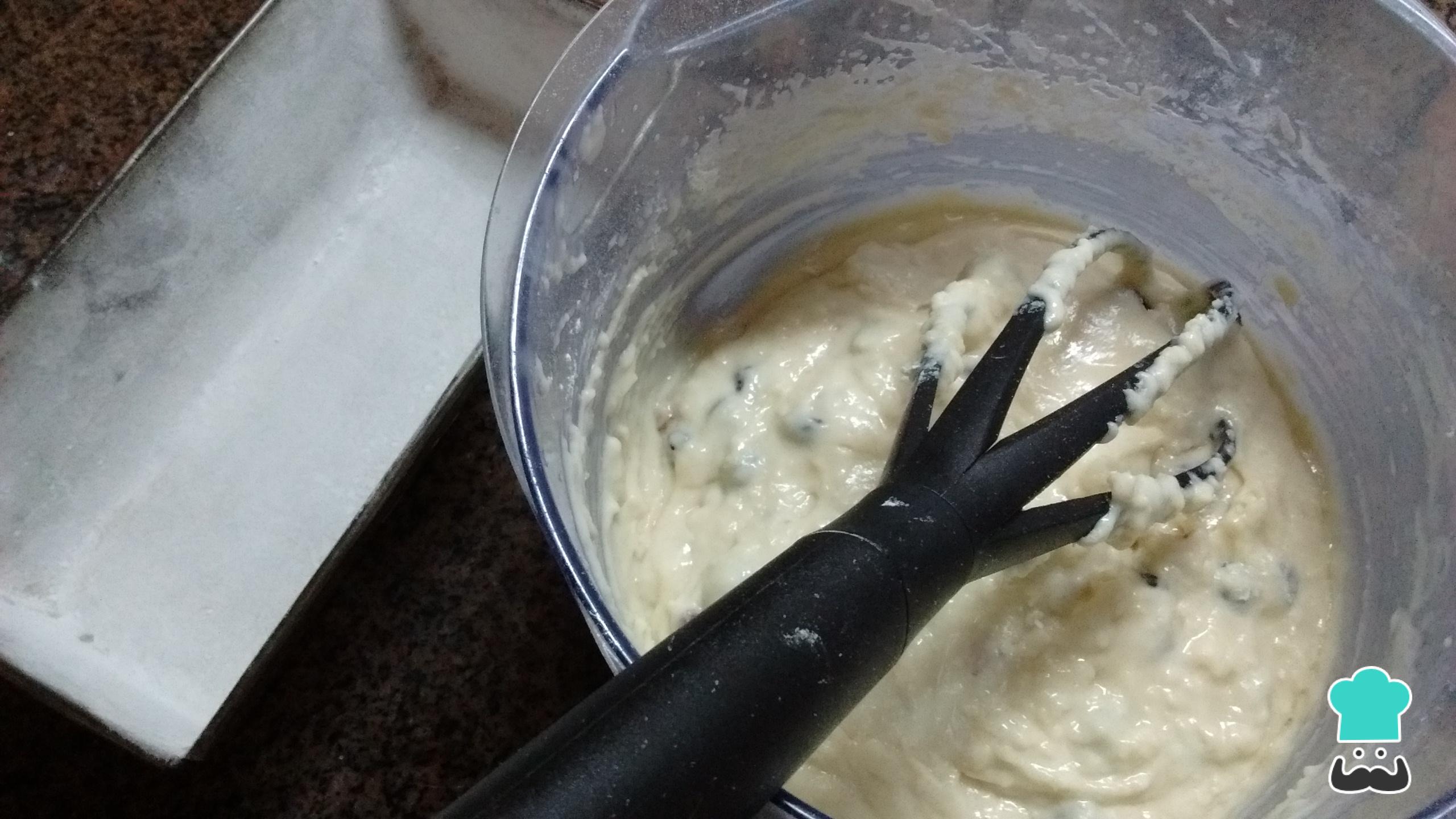 Una vez que tengas la preparación del budín casero, llévala a un molde previamente engrasado y enahrinado. El tamaño adecuado para estas cantidades es de 24 x 9 x 6 cm. Cocina tu budín en un horno precalentado a 180 ºC por 25 minutos hasta que se quiebre un poco encima, esté ligeramente dorado y, si lo pinchas, no salgan restos de la preparación.