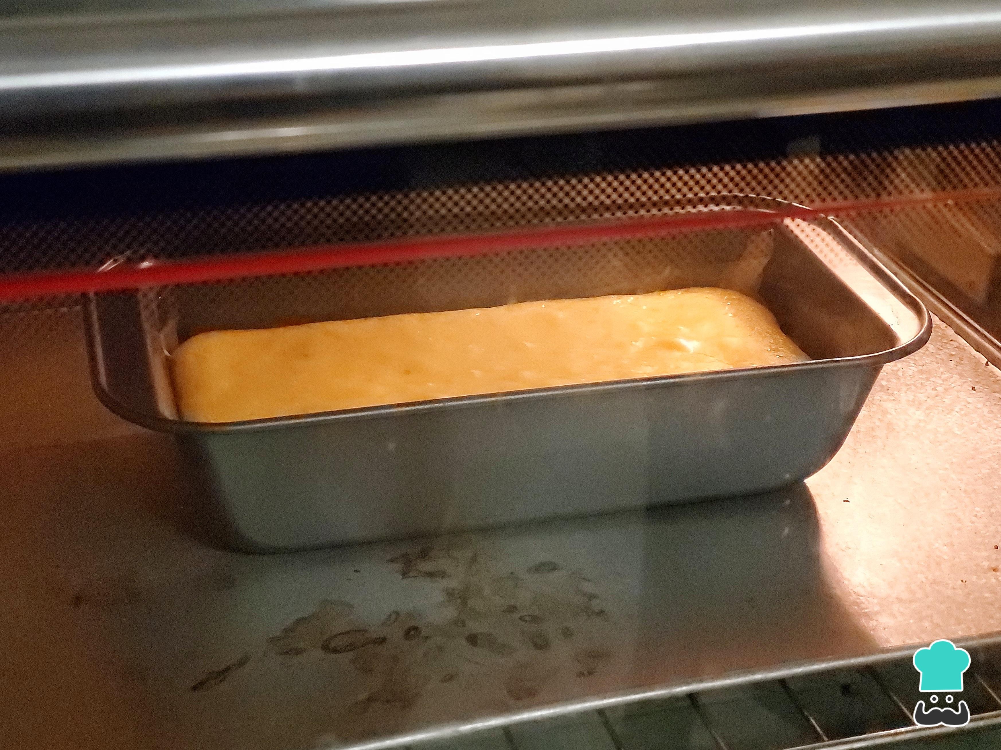 Esparce la masa y hornea el bizcocho esponjoso de limón sin glutena 170 °C durante 1 hora o hasta que la superficie esté bien dorada y, al introducir un palillo, este salga limpio.