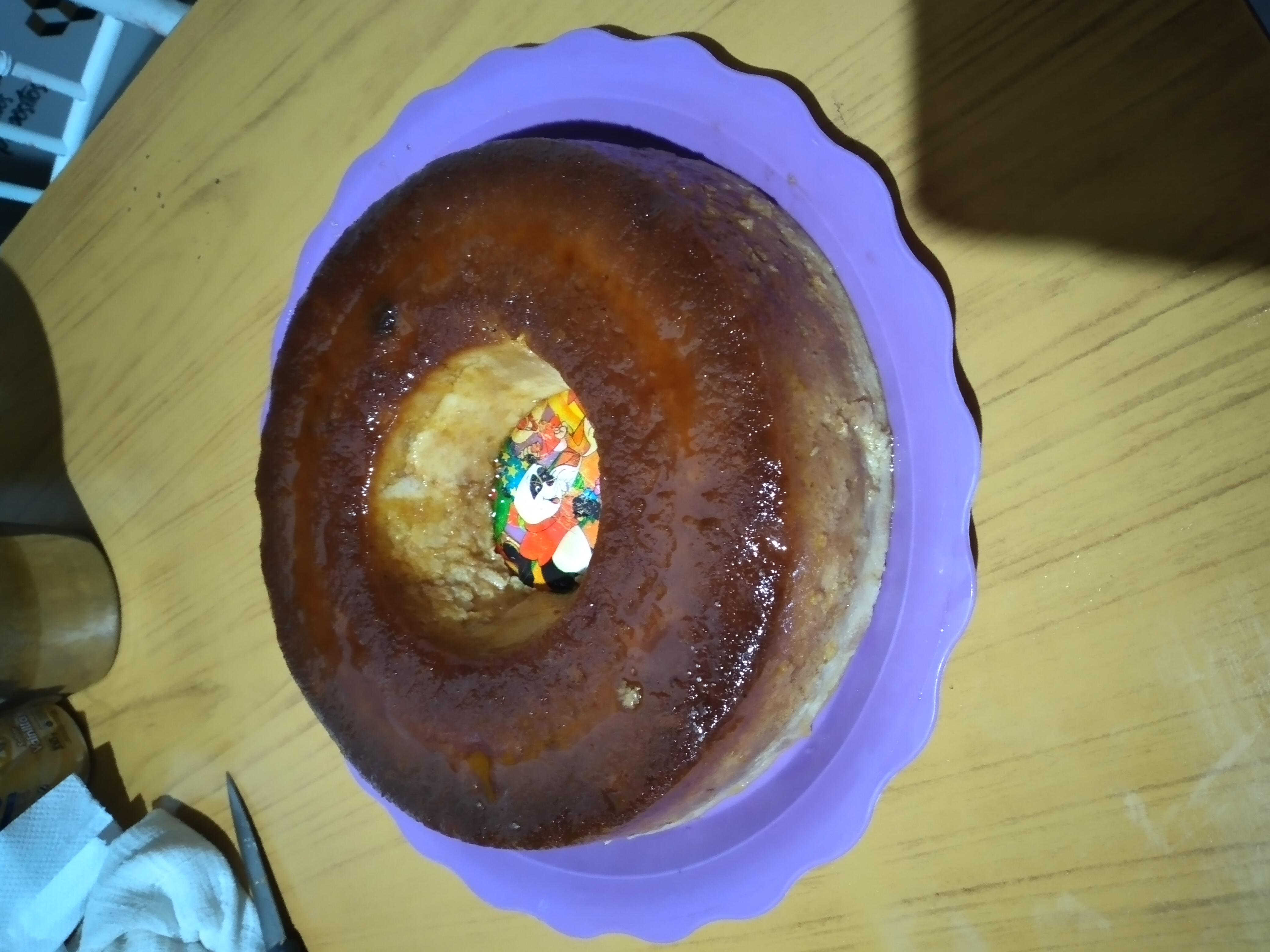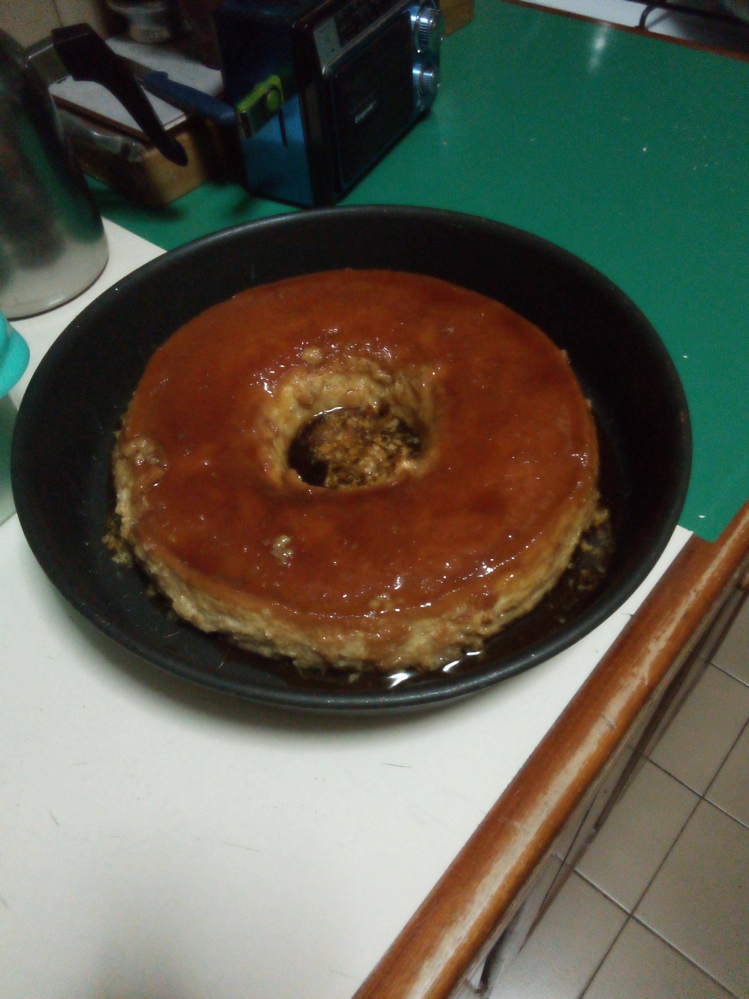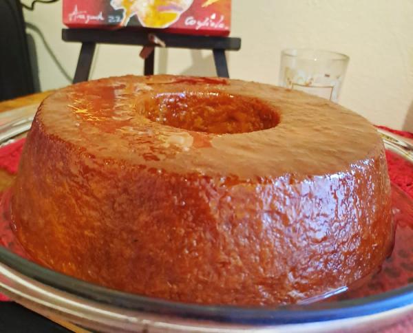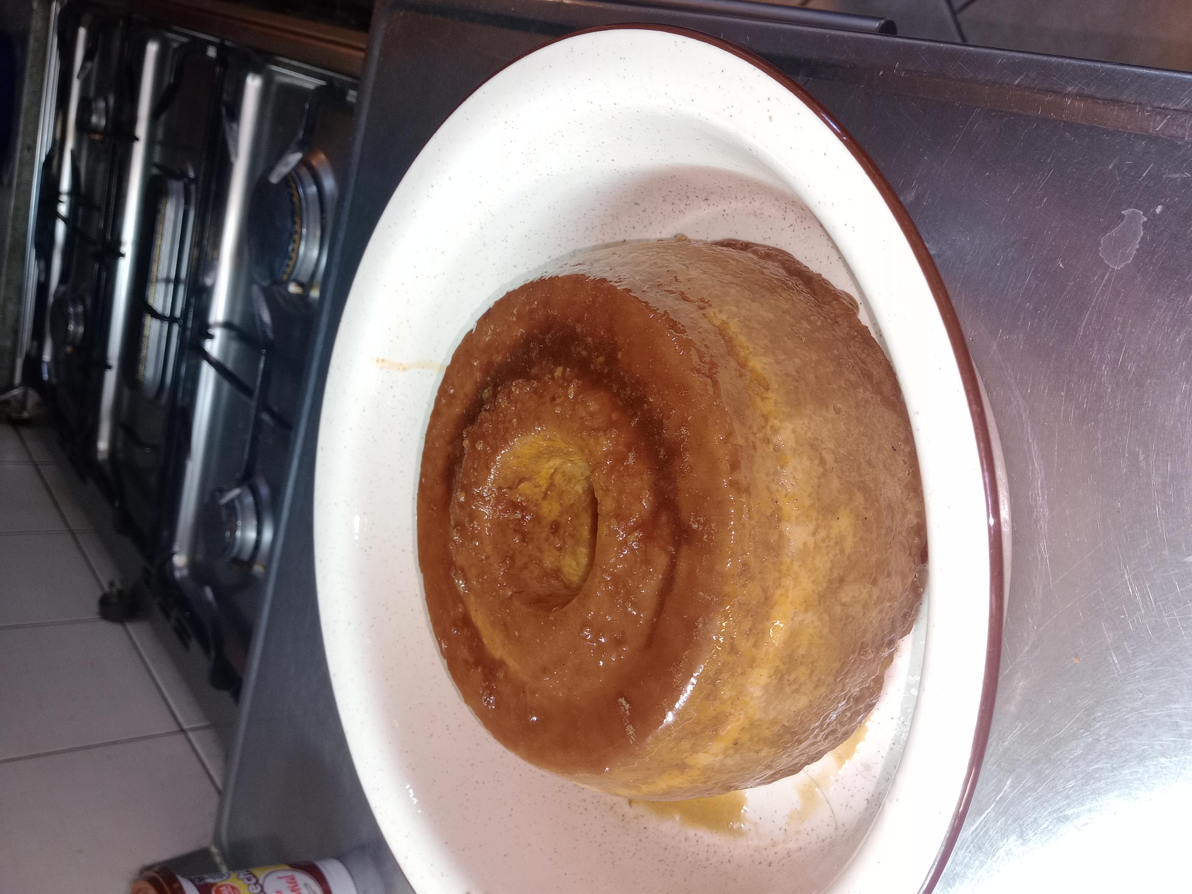 Distribuye el caramelo de forma pareja por todo el molde, base y paredes y deja que se enfríe. La idea es que quede como en la foto, que cubra toda la superficie del molde para que el budín de pan casero quede perfecto.