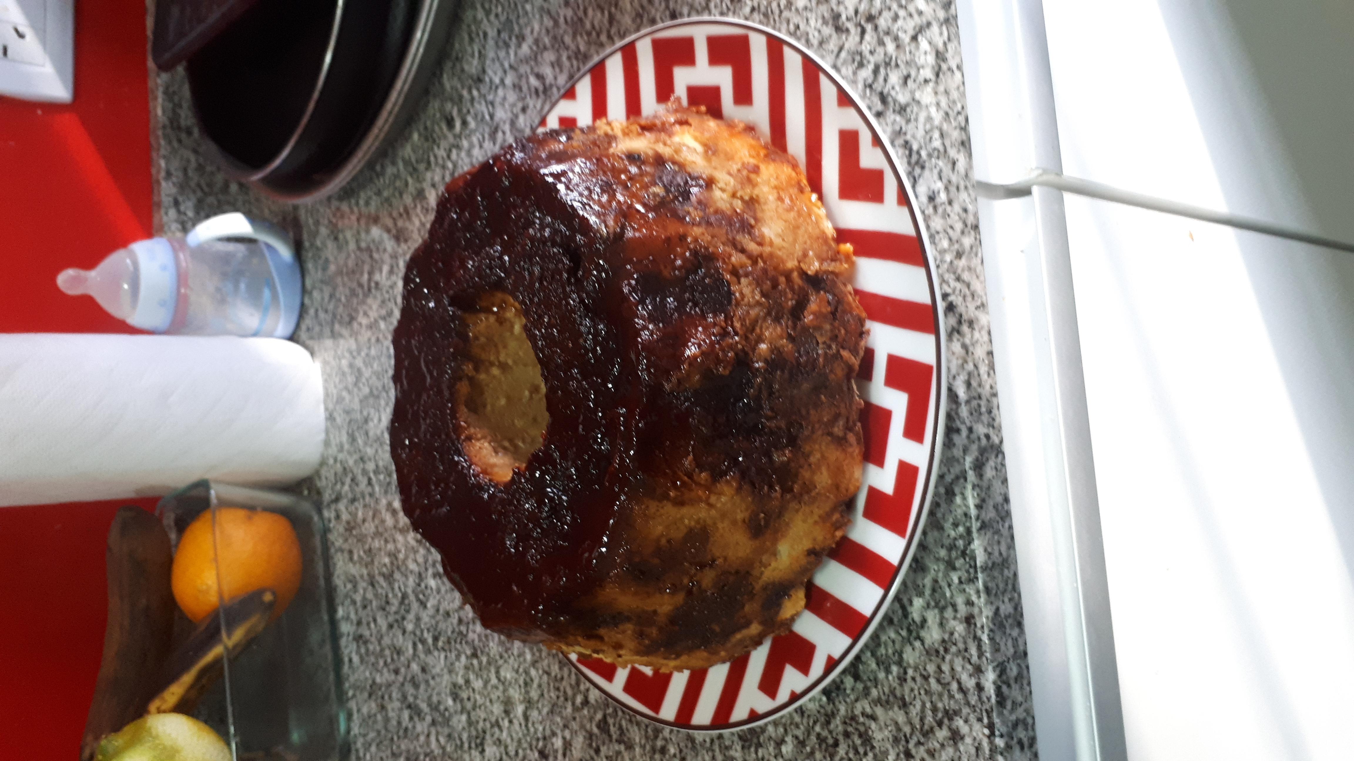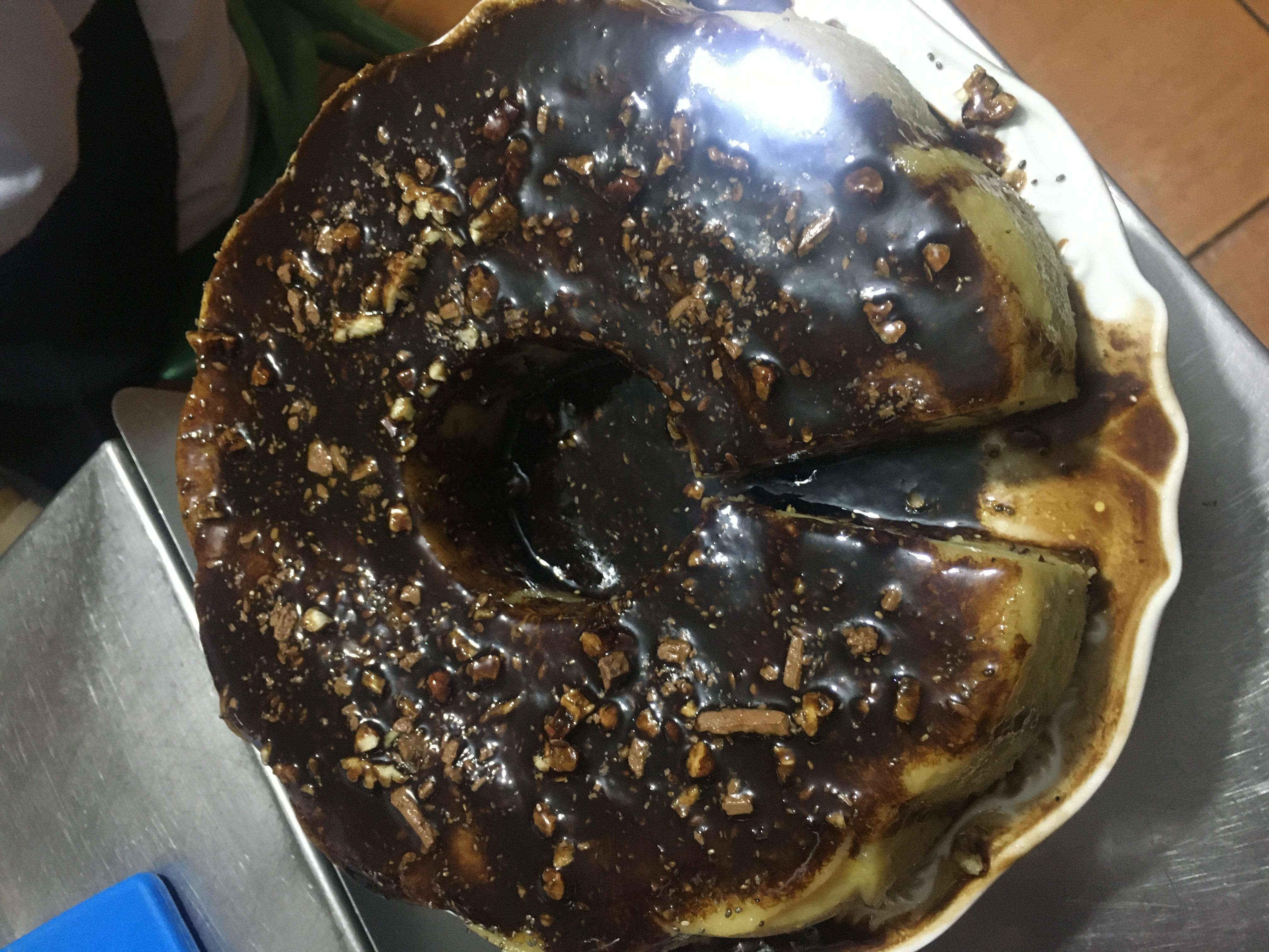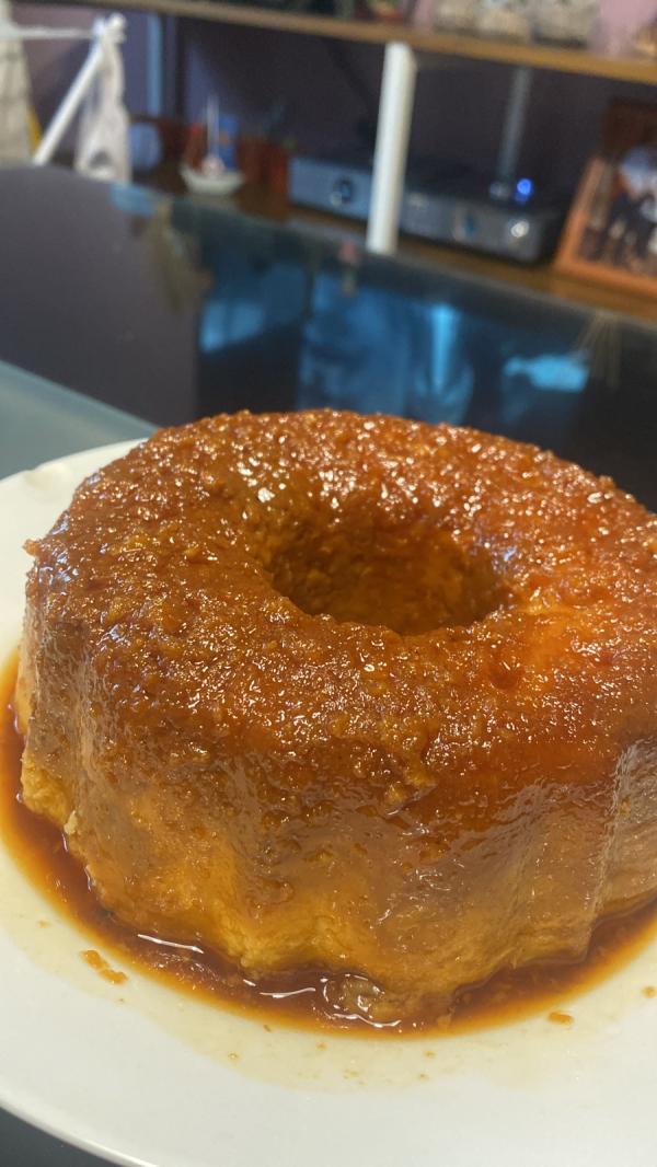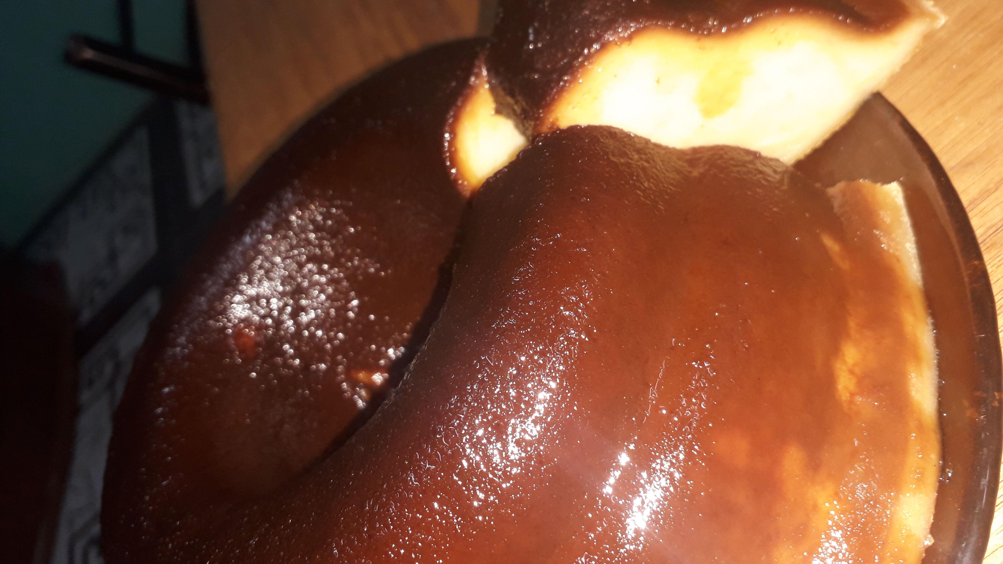 Distribuye el caramelo de forma pareja por todo el molde, base y paredes y deja que se enfríe. La idea es que quede como en la foto, que cubra toda la superficie del molde para que el budín de pan casero quede perfecto.