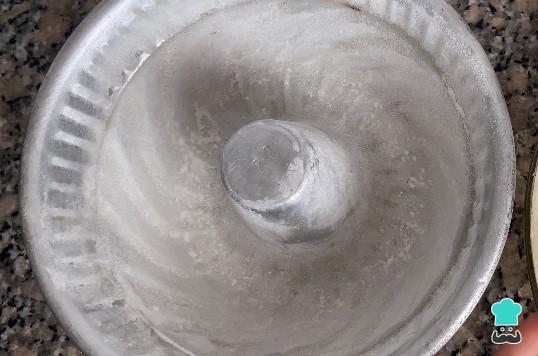 Prepara el molde engrasándolo y enharinándolo. En este caso, es un savarín de 22 cm de diámetro, sin embargo, puedes adaptar las cantidades al molde que quieras utilizar para añadir el budín con chispas de chocolate.