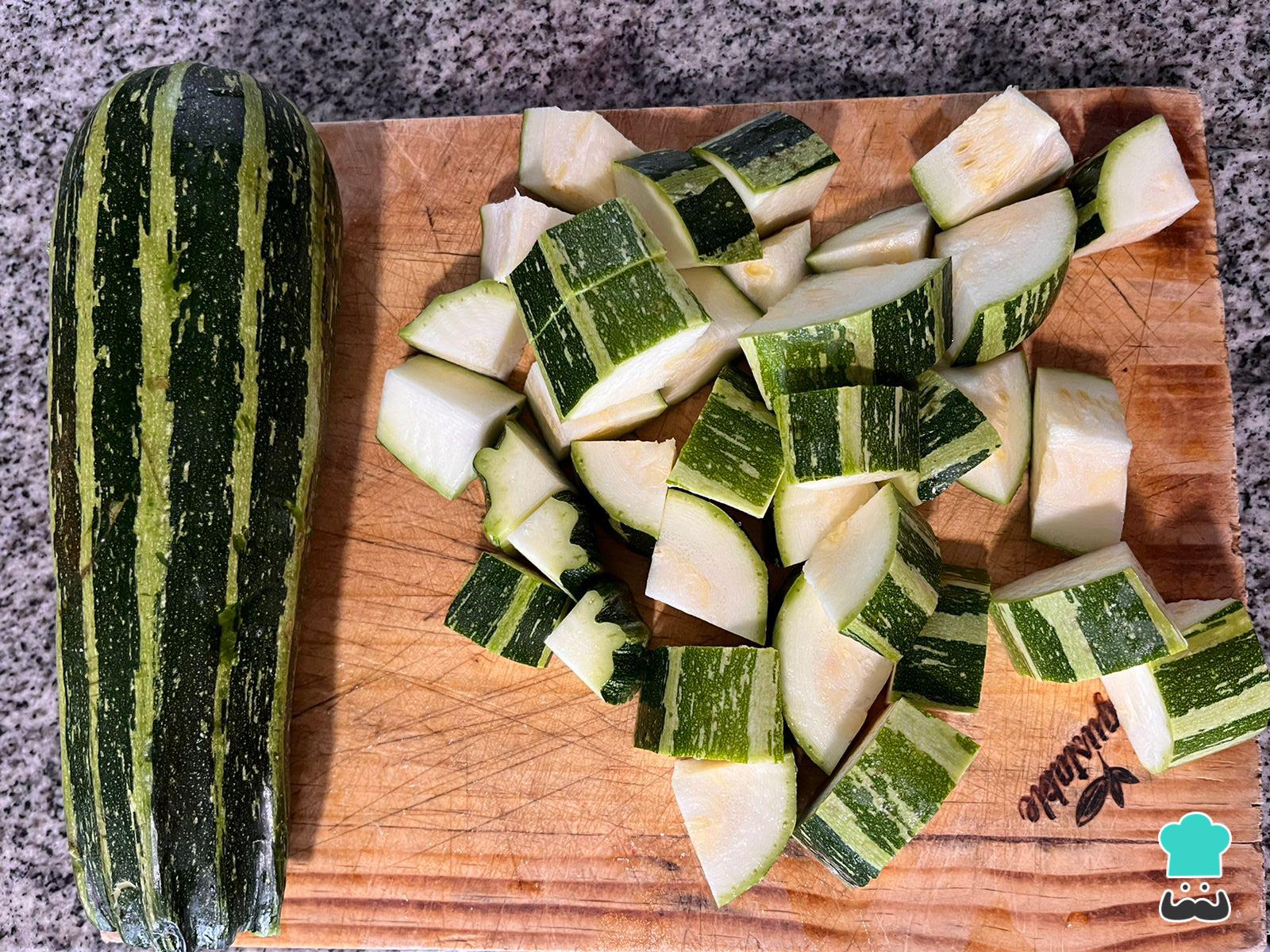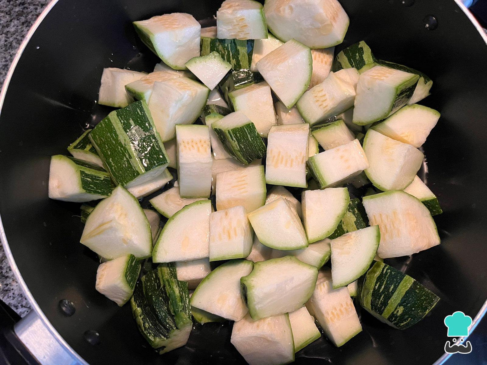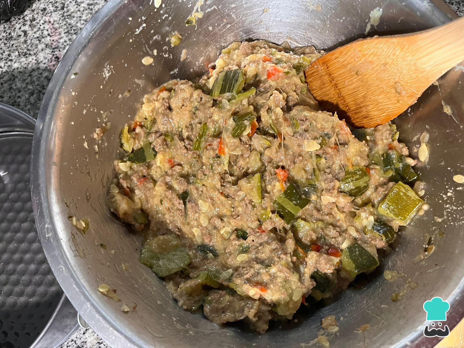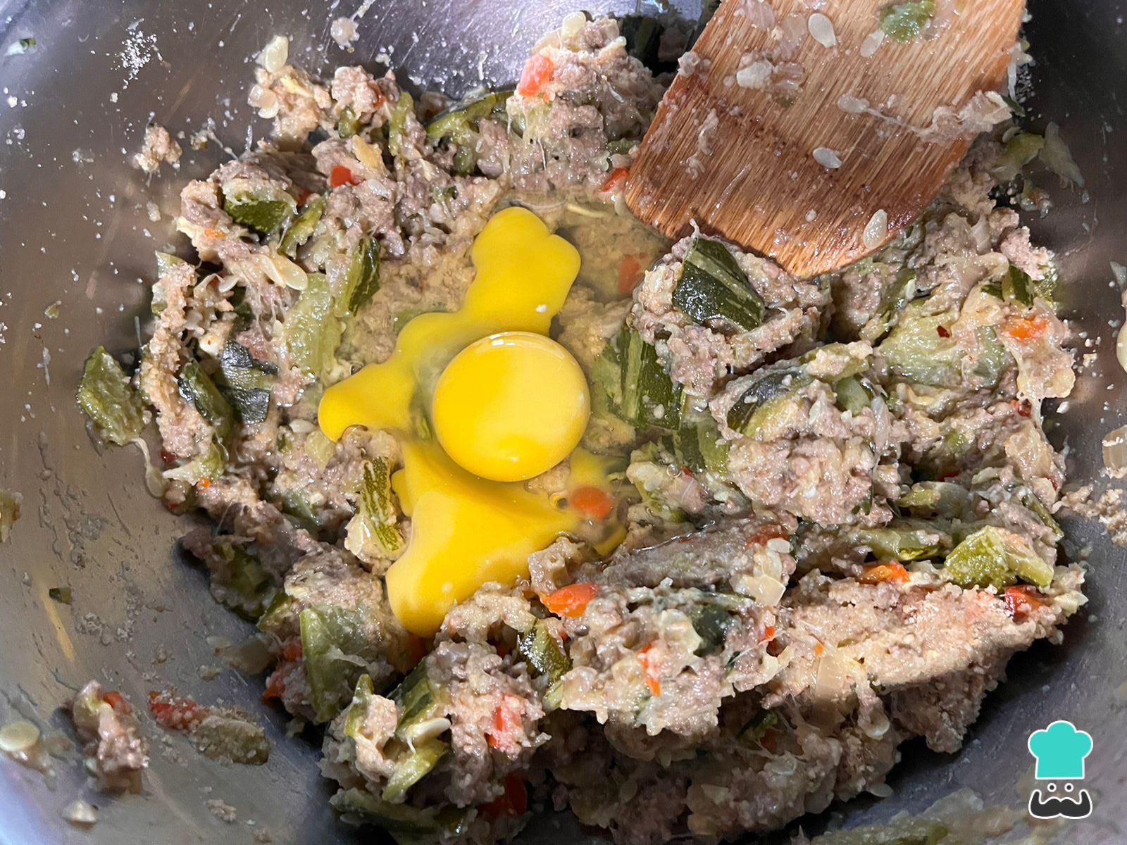 Cuando el exceso de agua del zapallo italiano se haya evaporado, apaga el fuego y añade la carne molida, integra bien.