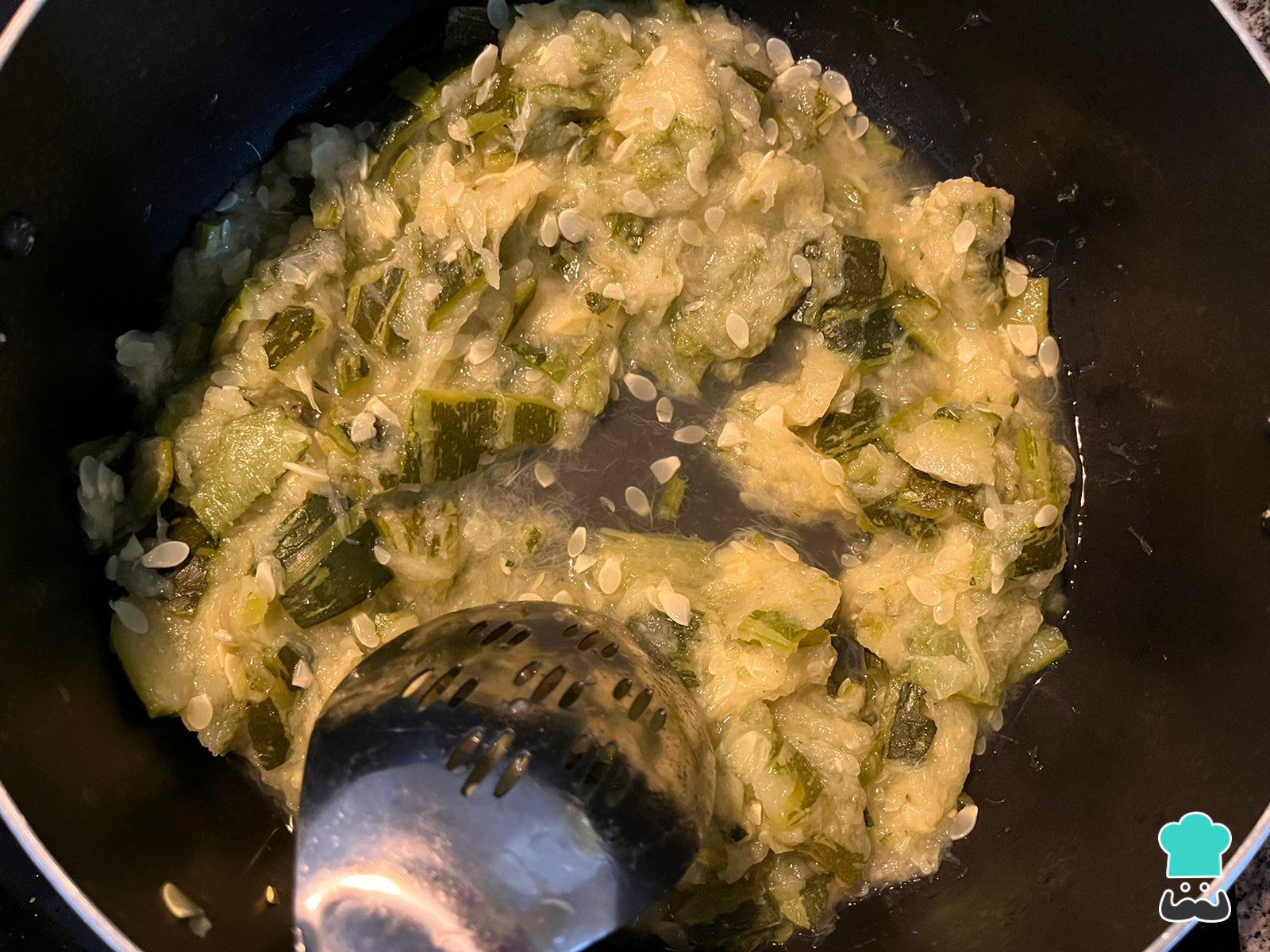 Cuando el zapallo esté cocido, retira el exceso de agua y con un pisapapa haz un puré.