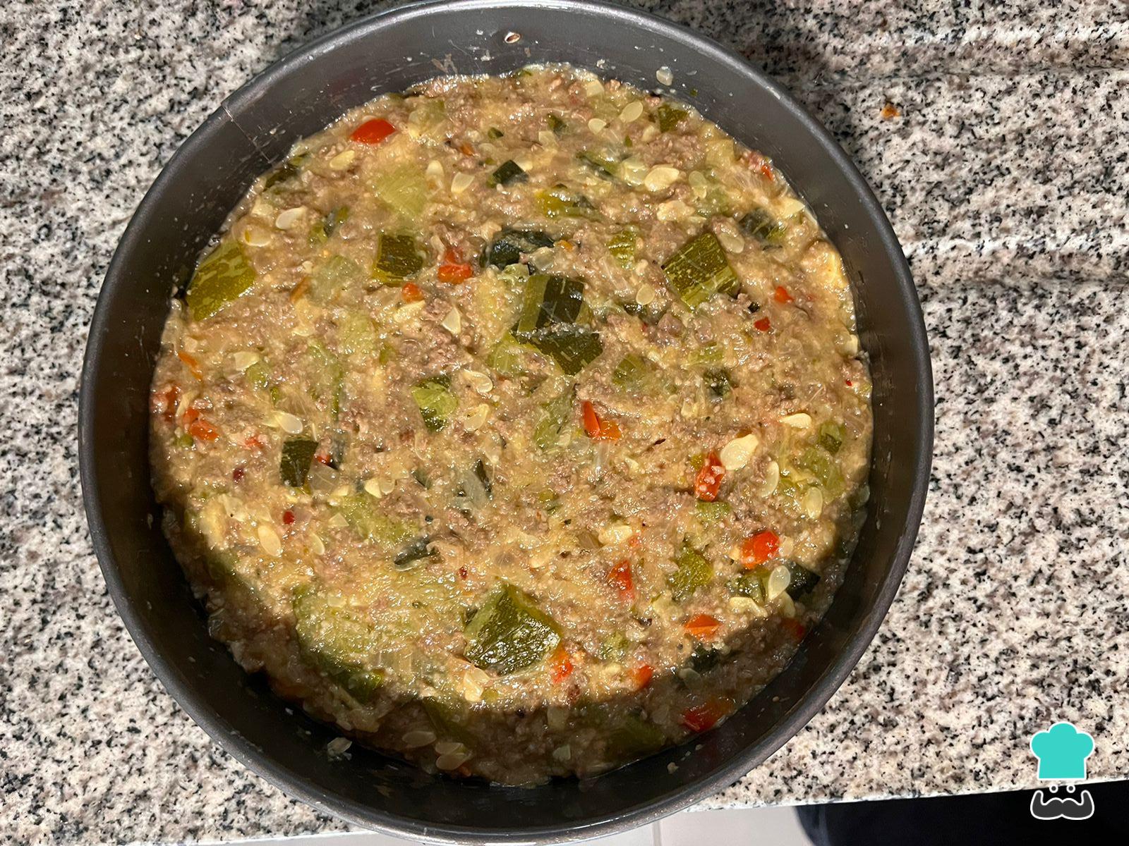 Engrasa una fuente apta para horno y vierte la mezcla.