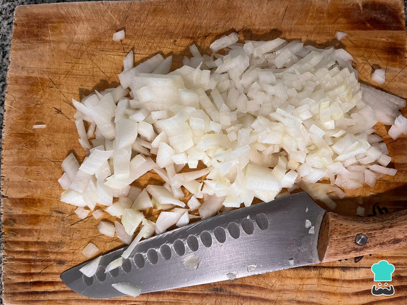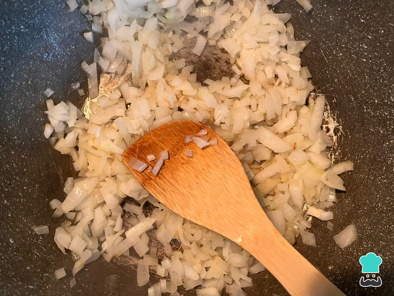 En una sartén añade aceite y sofríe la cebolla por unos minutos.