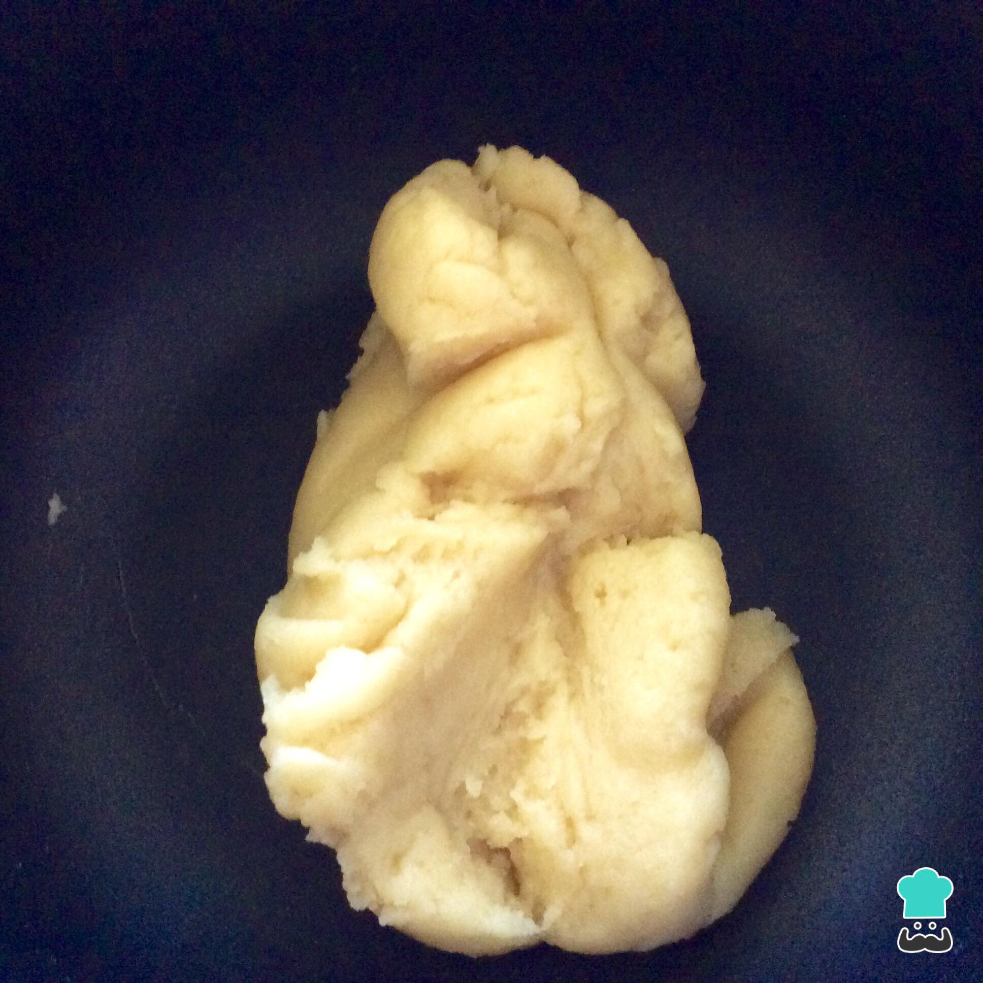 Cuando la mezcla se despegue de las paredes sigue mezclando y cocina a fuego bajo durante 1 minuto, pasado el minuto retira de la olla la masa de los buñuelos caseros y colócala en una superficie fría.