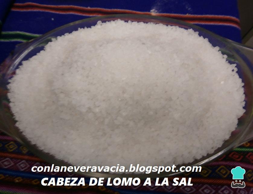 Cubre todo el lomo con más sal gorda. Luego, moja la sal con agua un poco por encima para que quede bien sellado todo, la costra queda más dura por fuera y por dentro seca. Introduce en el horno la cabeza de lomo a la sal y baja la temperatura a 220ºC. Dependiendo del tamaño de la pieza el tiempo variará, pero calcula que para un kilo de carne necesitarás de 45 a 60 minutos.