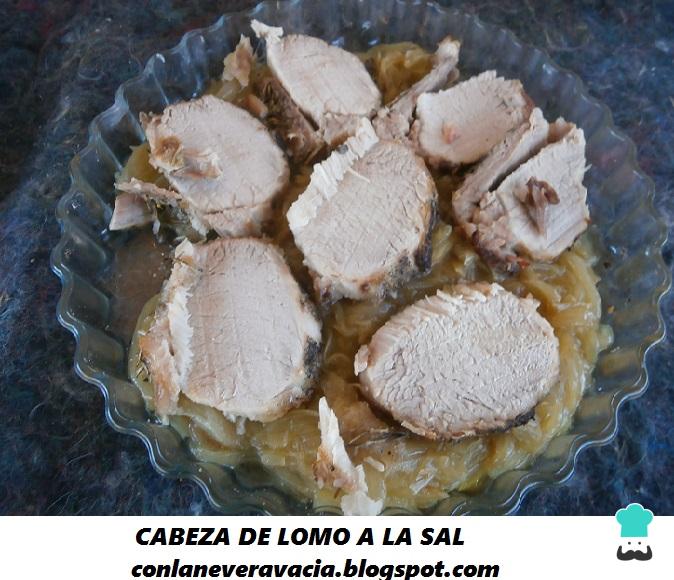 En casa hemos acompañado la cabeza de lomo a la sal con cebolla caramelizada en el microondas. Espero que os guste y que aproveche. Más recetas como esta en mi blog Con la nevera vacía.
