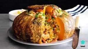 Ahuecar la calabaza un poco, y rellenar con la preparación anterior incorporando la calabaza que se retiro.