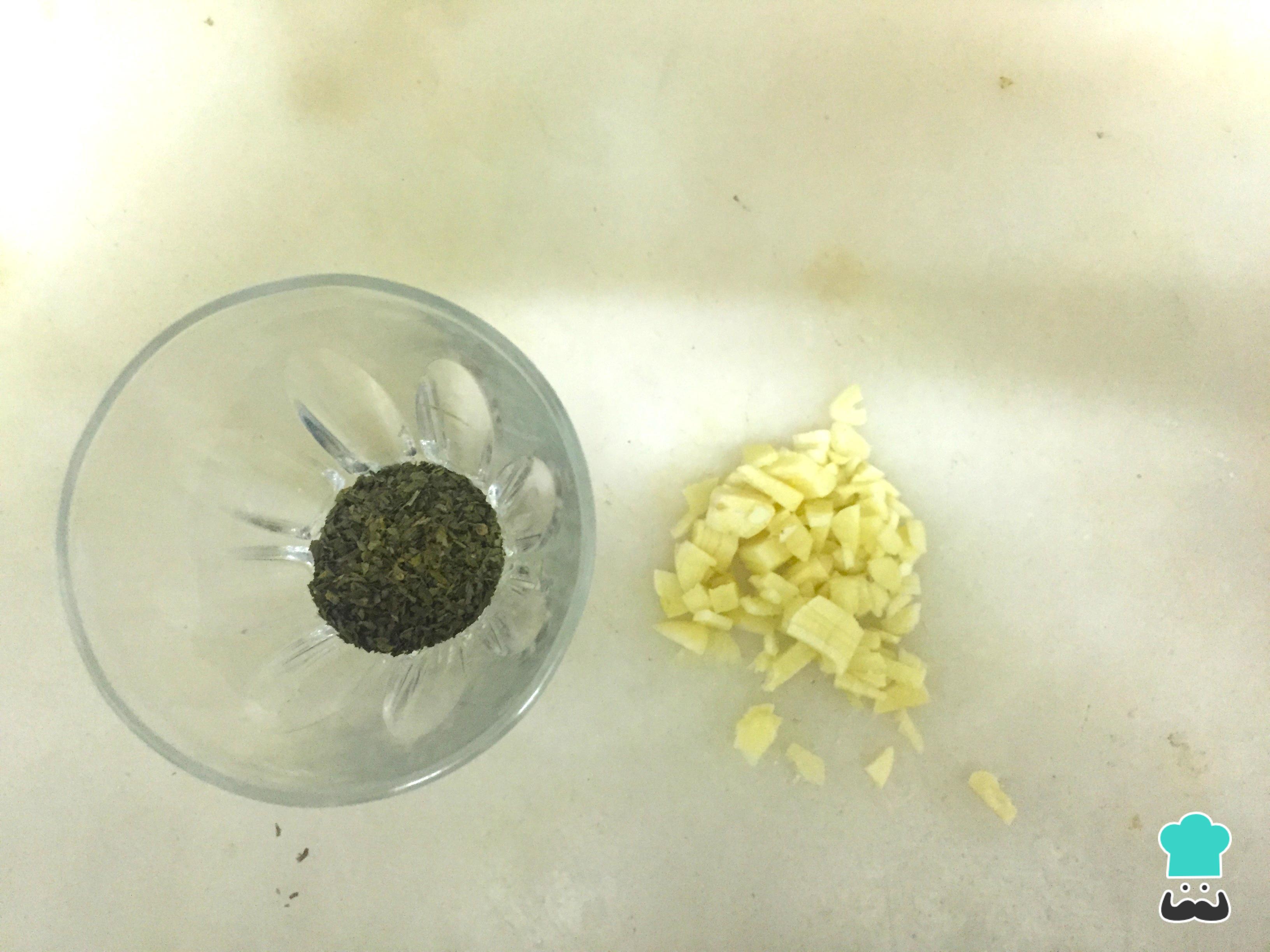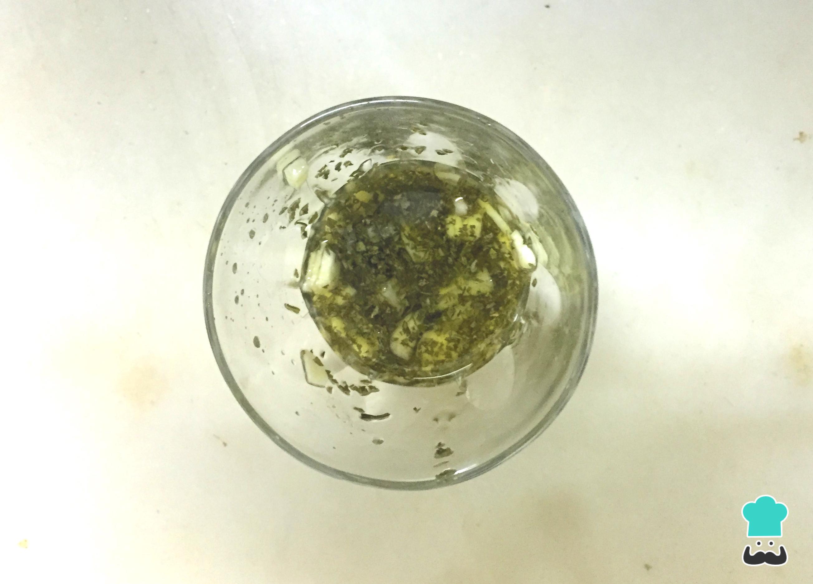 Mezcla los ajos con el perejil y el aceite para dejar lista la salsa que acompañará a los calamares a la plancha. De esta forma, además, el aceite cogerá el sabor del resto de ingredientes.