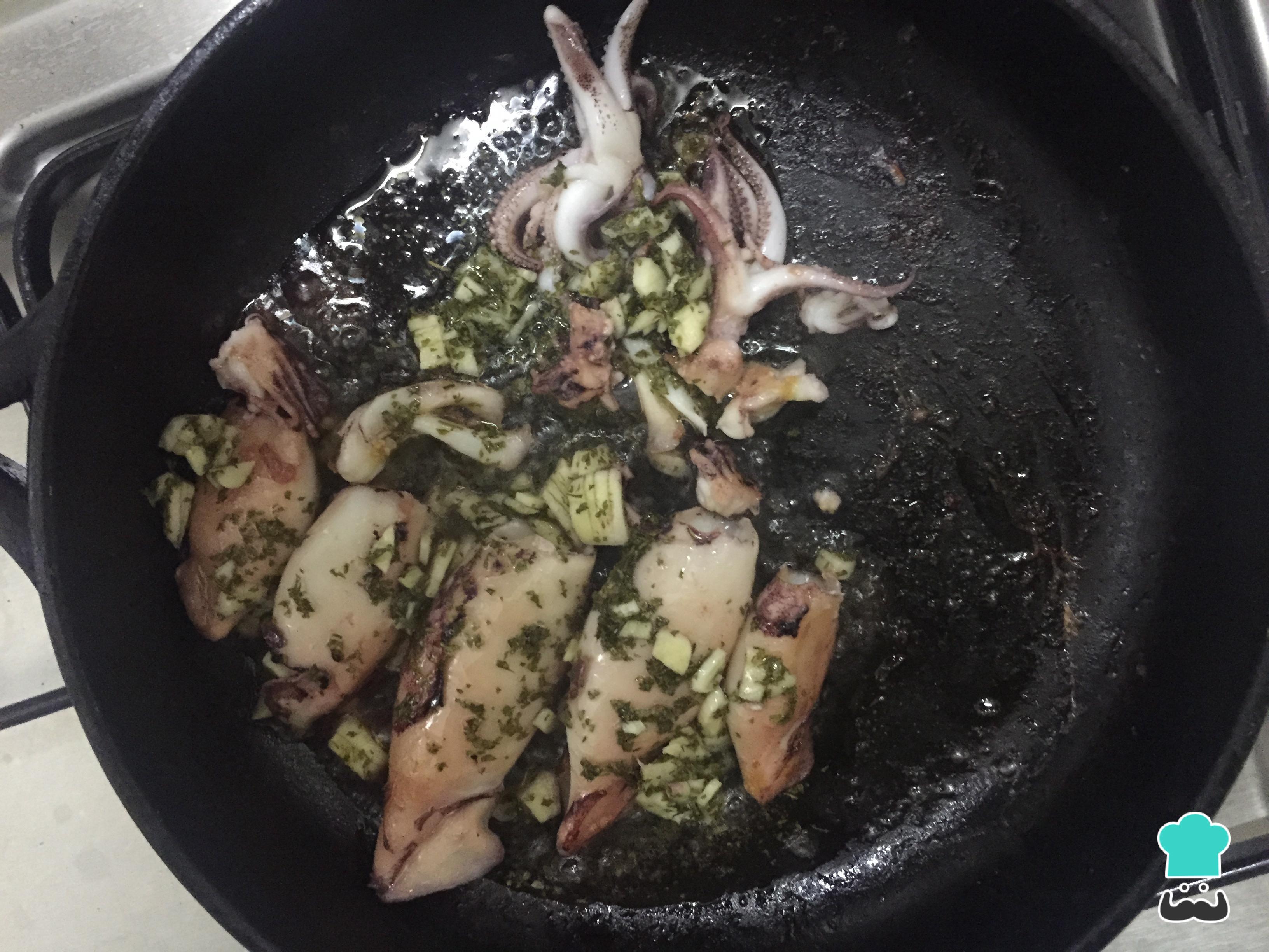 - Saltear el ajo picado en el aceite caliente antes de añadir los calamares no es un truco que hará que queden más tiernos pero sí más sabrosos, puesto que de esta forma el aceite adquiere todo el sabor del ajo.