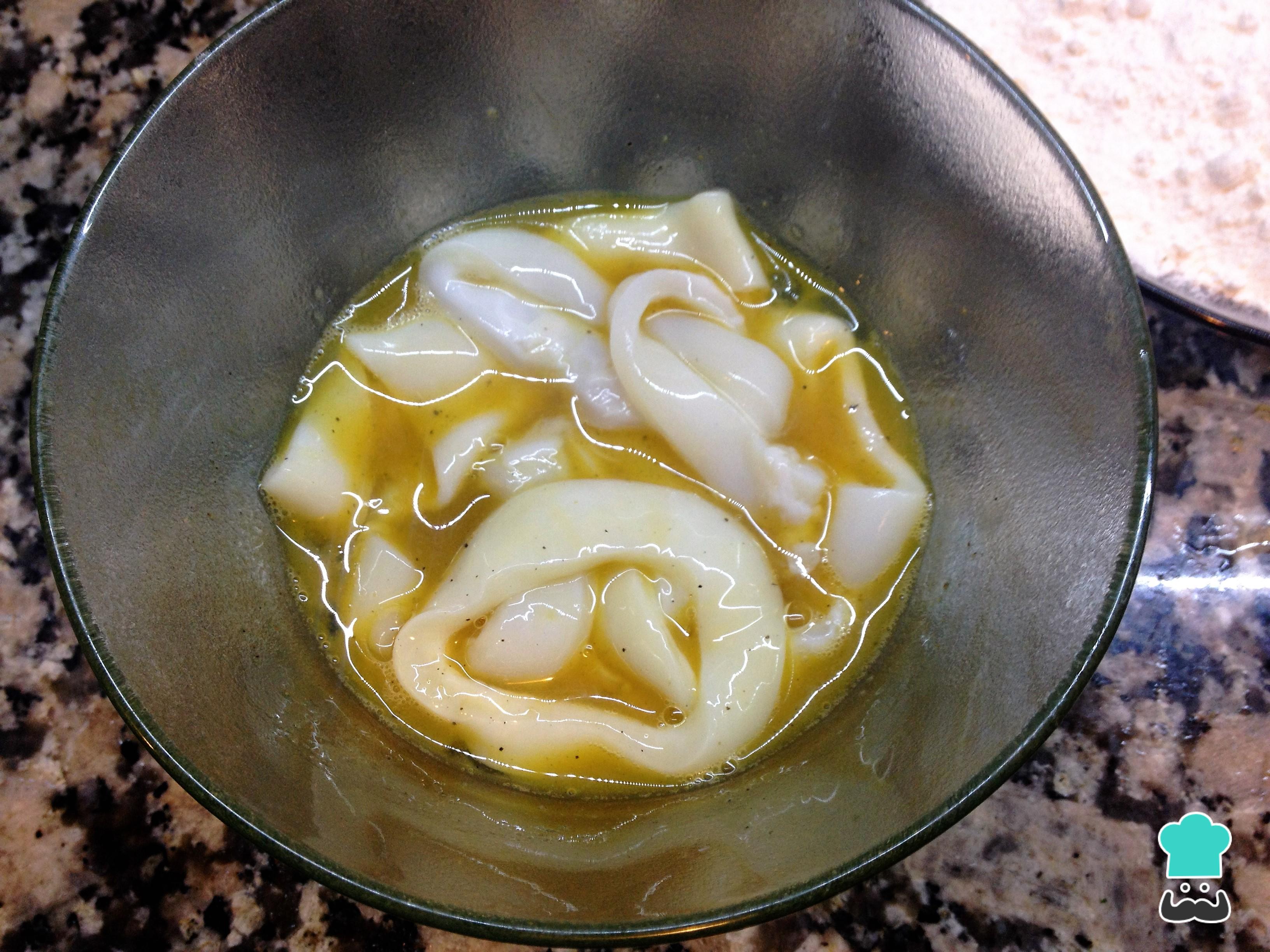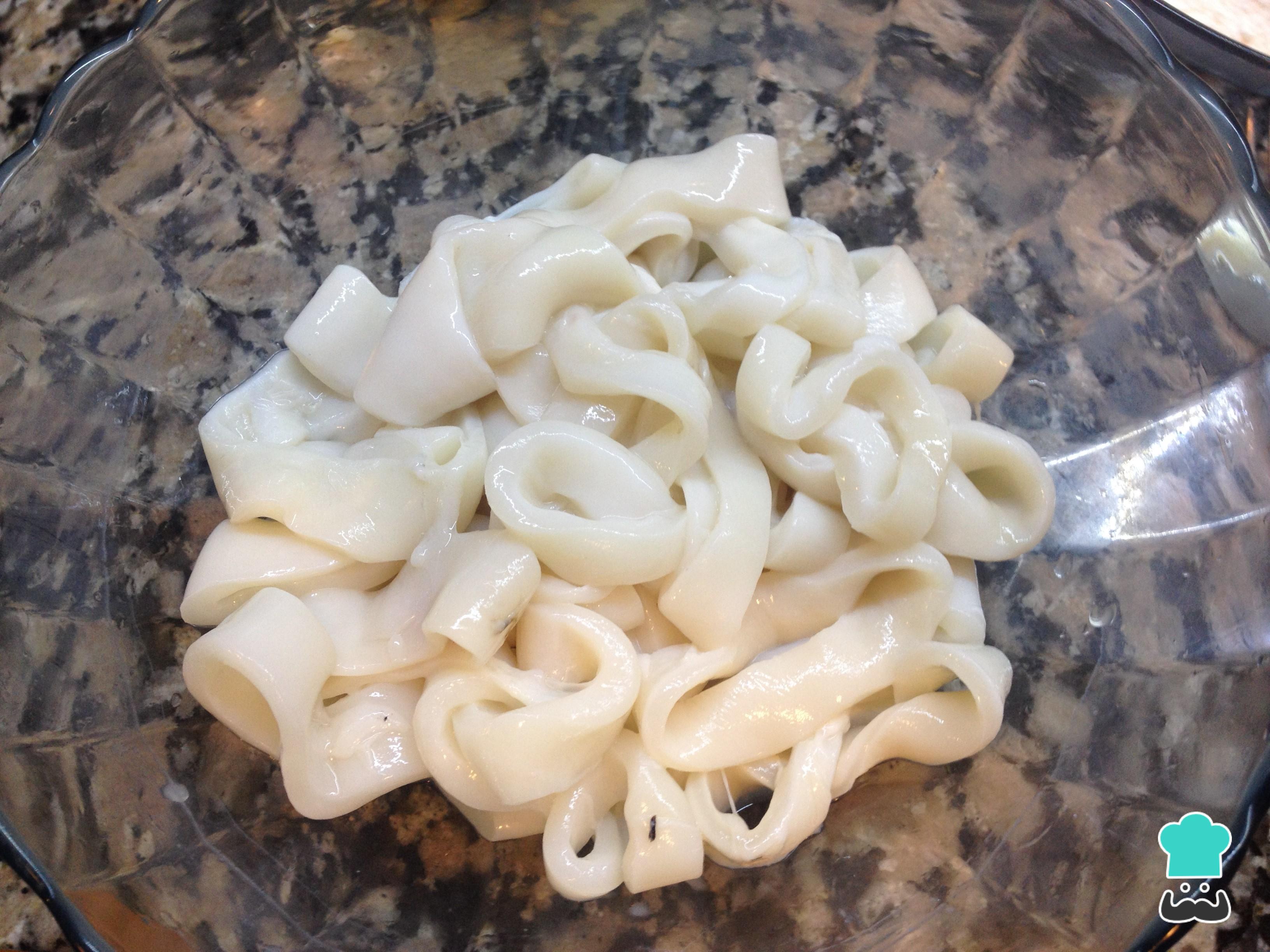 Truco: Si tienes los calamares enteros tendrás que limpiarlos bien cortarlos en anillos.
