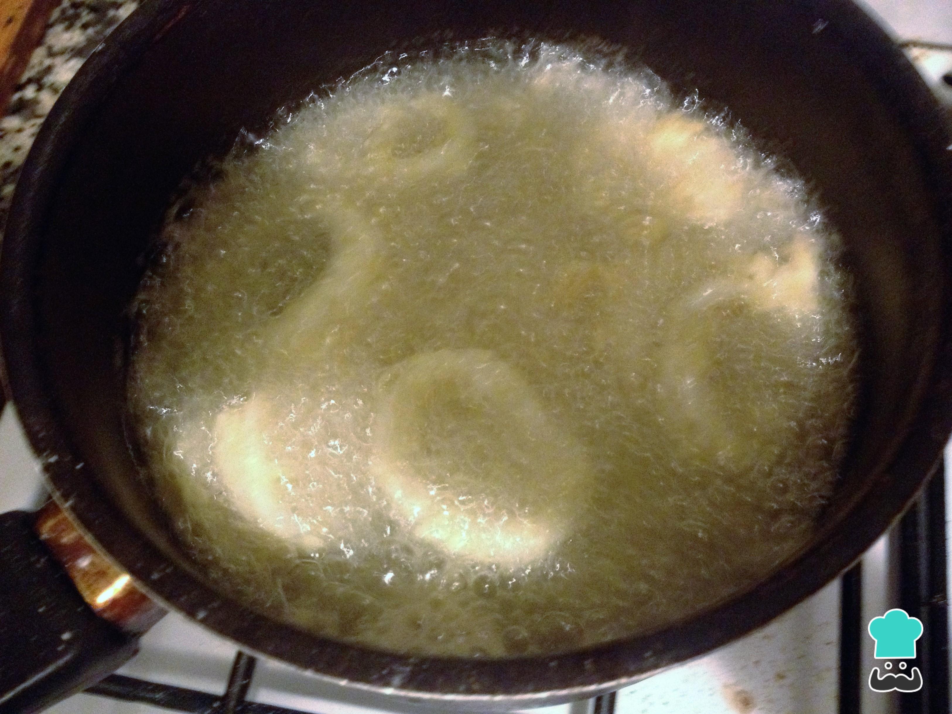 Freír las rabas a en el aceite caliente durante 3 o 4 minutos, no más... realmente controlar el tiempo porque si las dejan más de 4 minutos luego quedan duras.