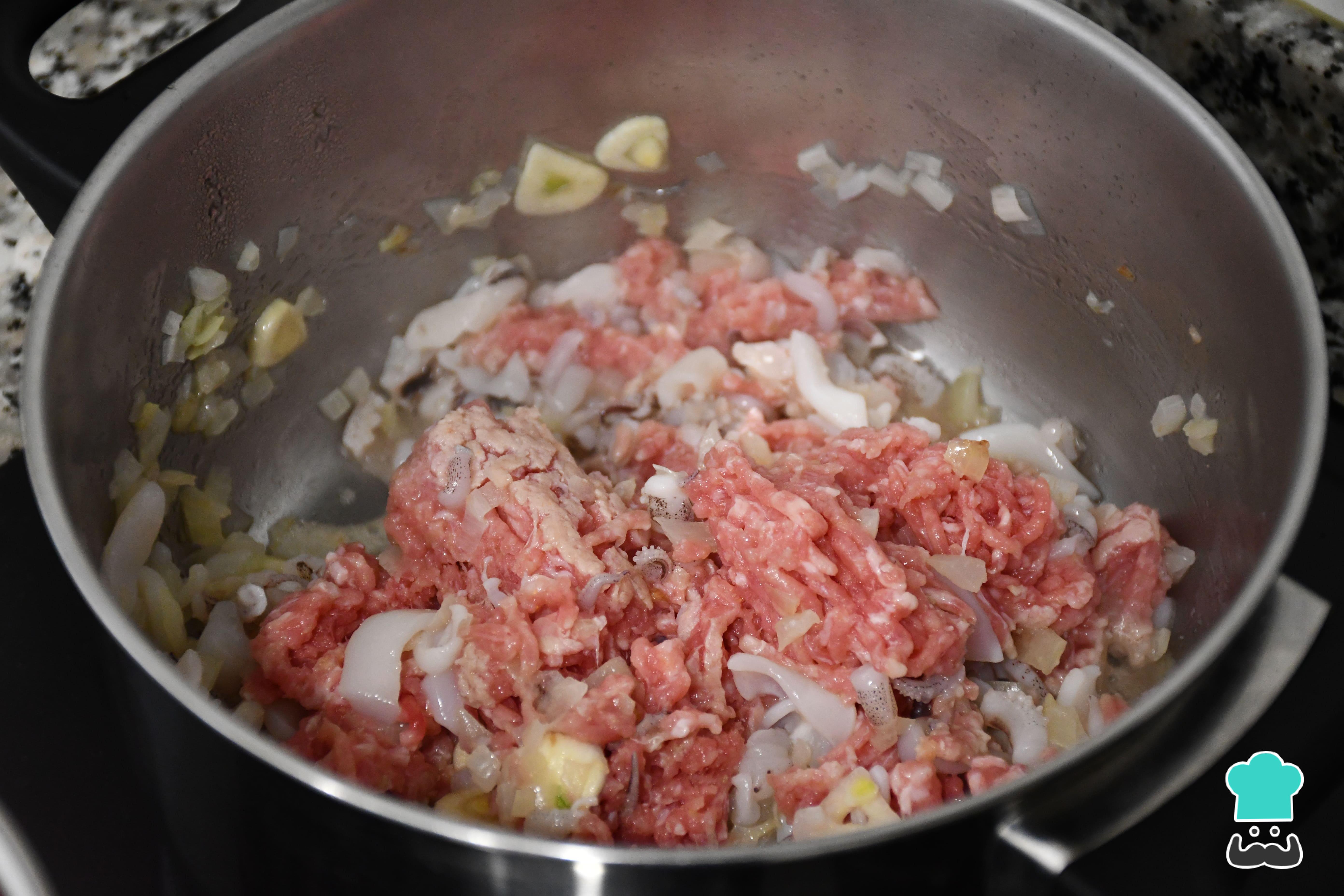 Truco: si utilizas carne picada mixta, 50 % ternera y 50 % cerdo, el relleno queda más jugoso por la grasa que aporta la carne de cerdo.