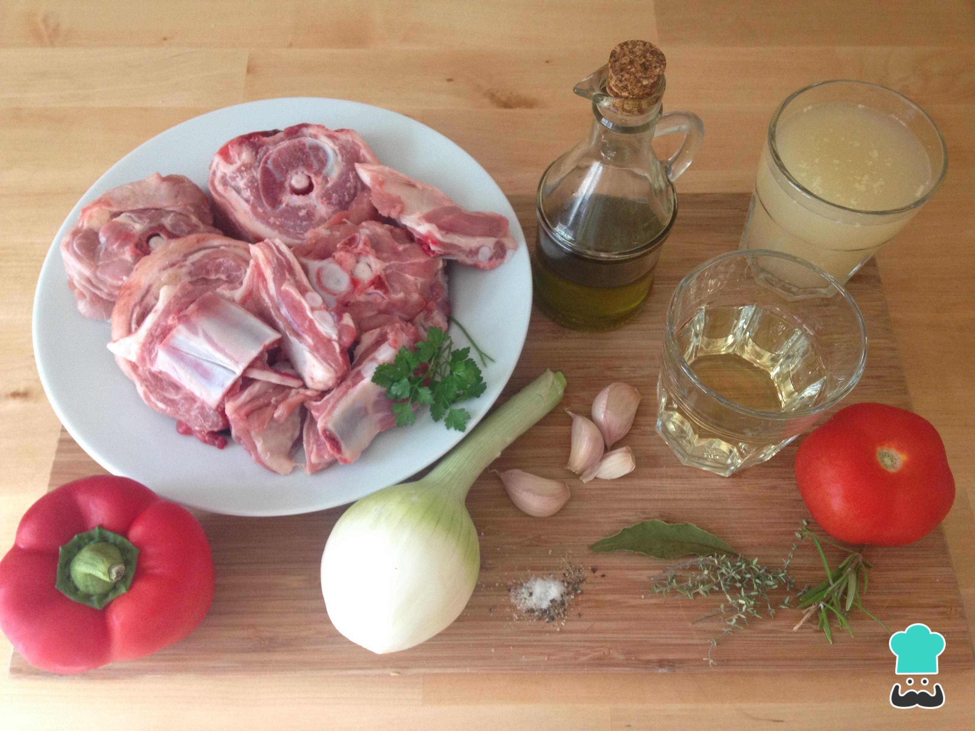 Reunimos todos los ingredientes para preparar la caldereta de cordero.