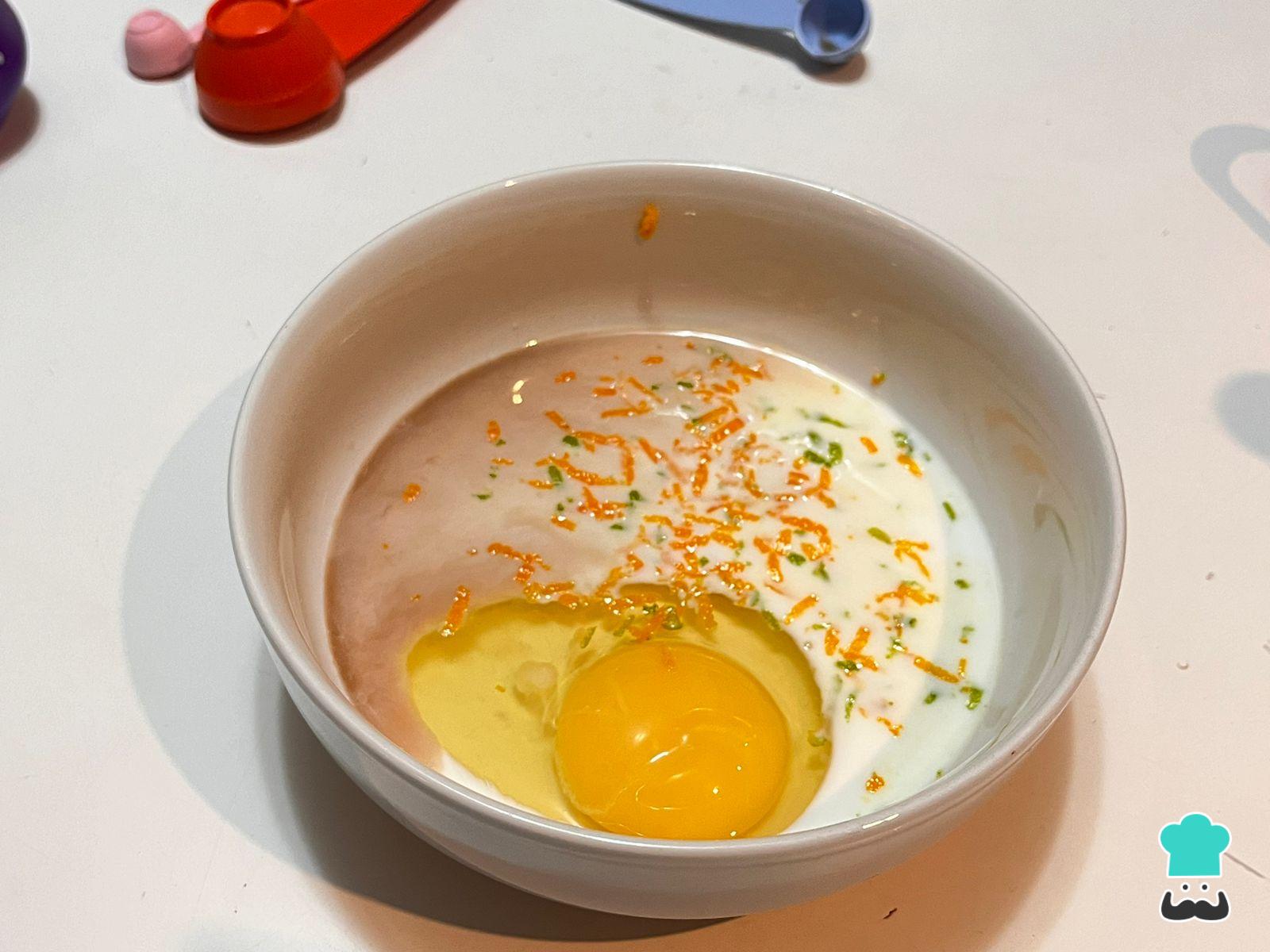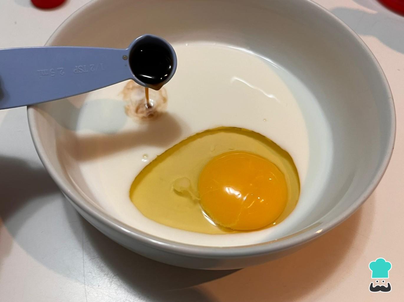 Agrégalo a la mezcla de leche y huevo, y remueve hasta integrar.