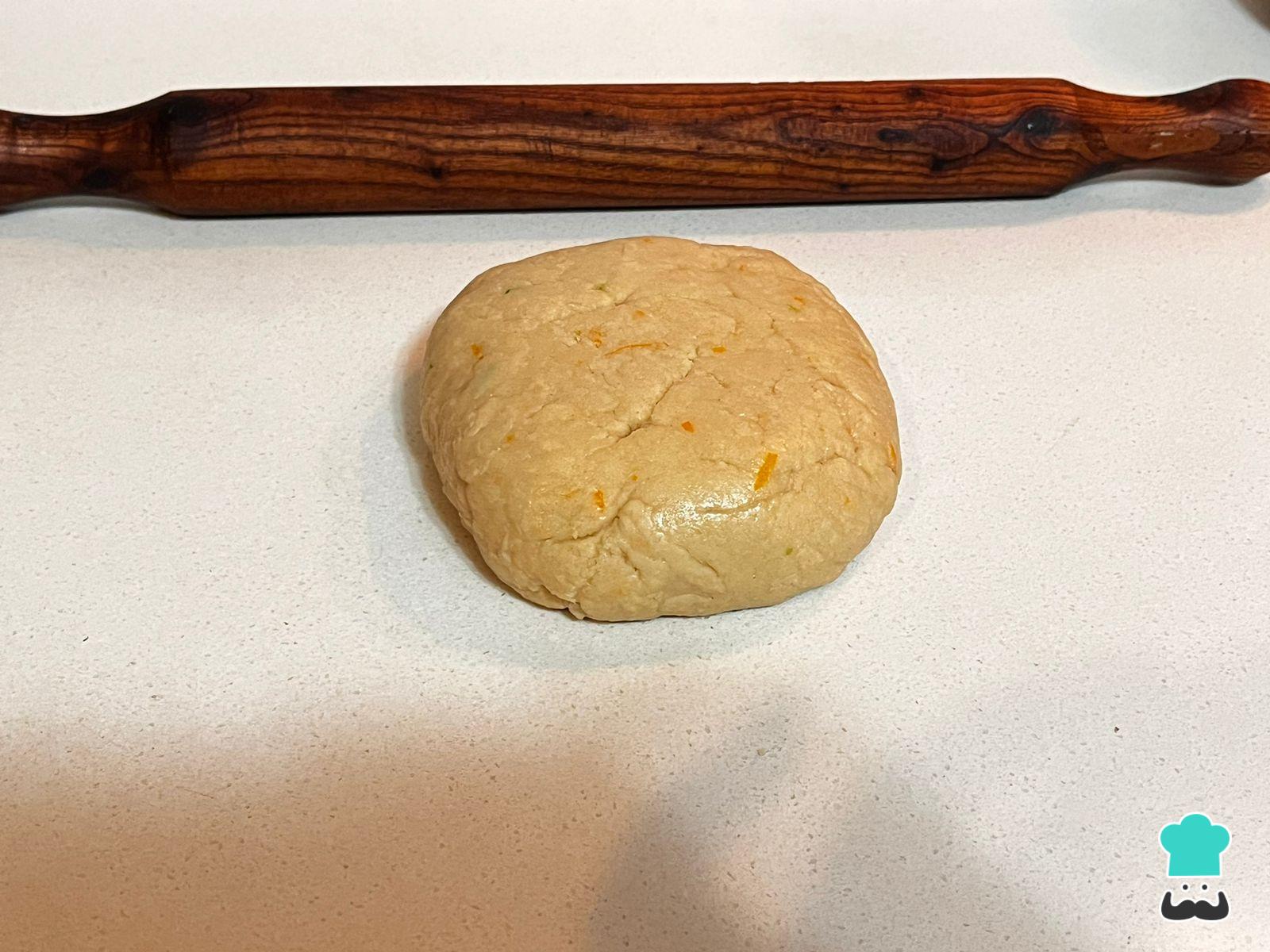 Pasado el tiempo, estira la masa para calzones rotos en una superficie plana usando un uslero.