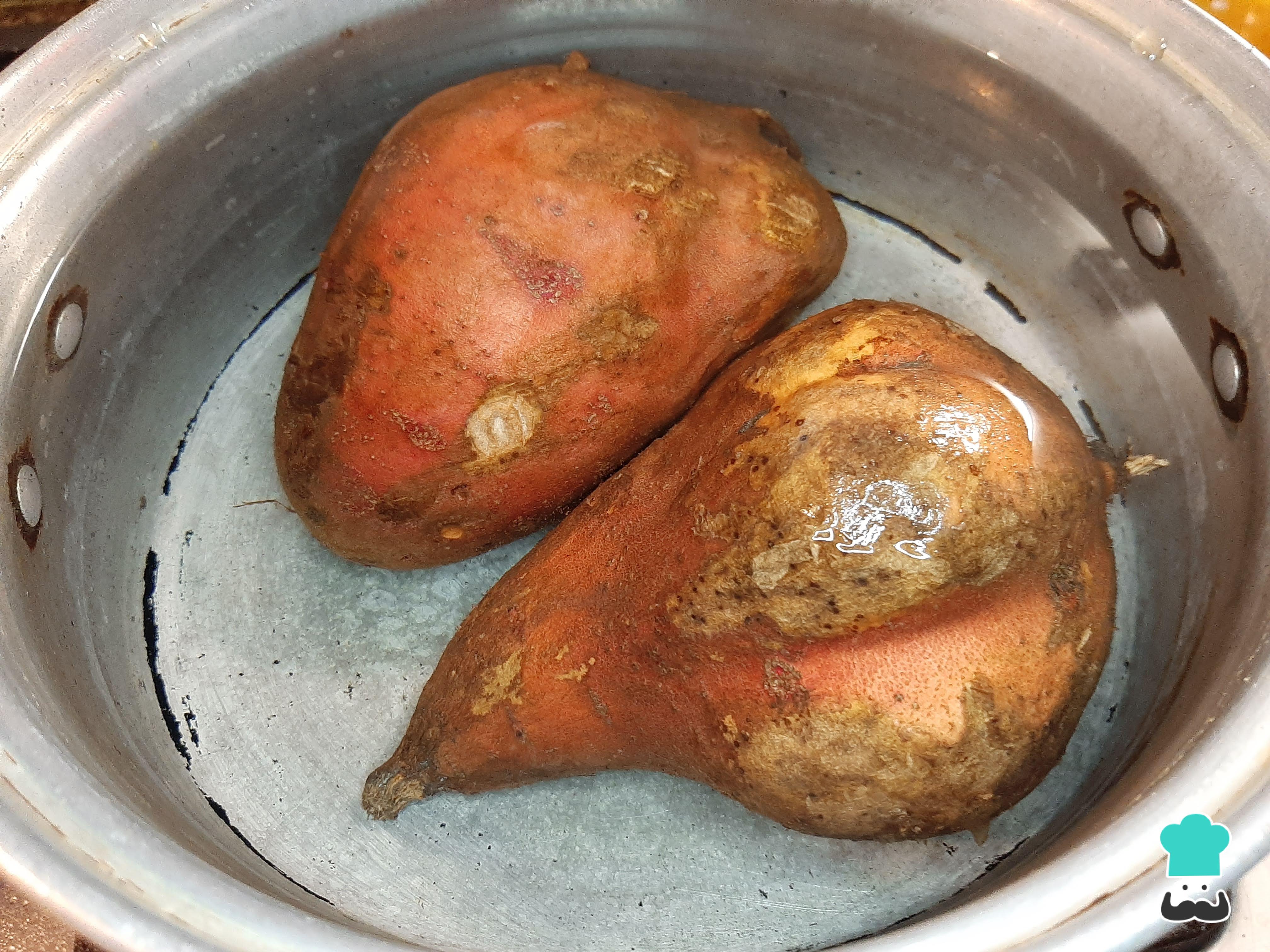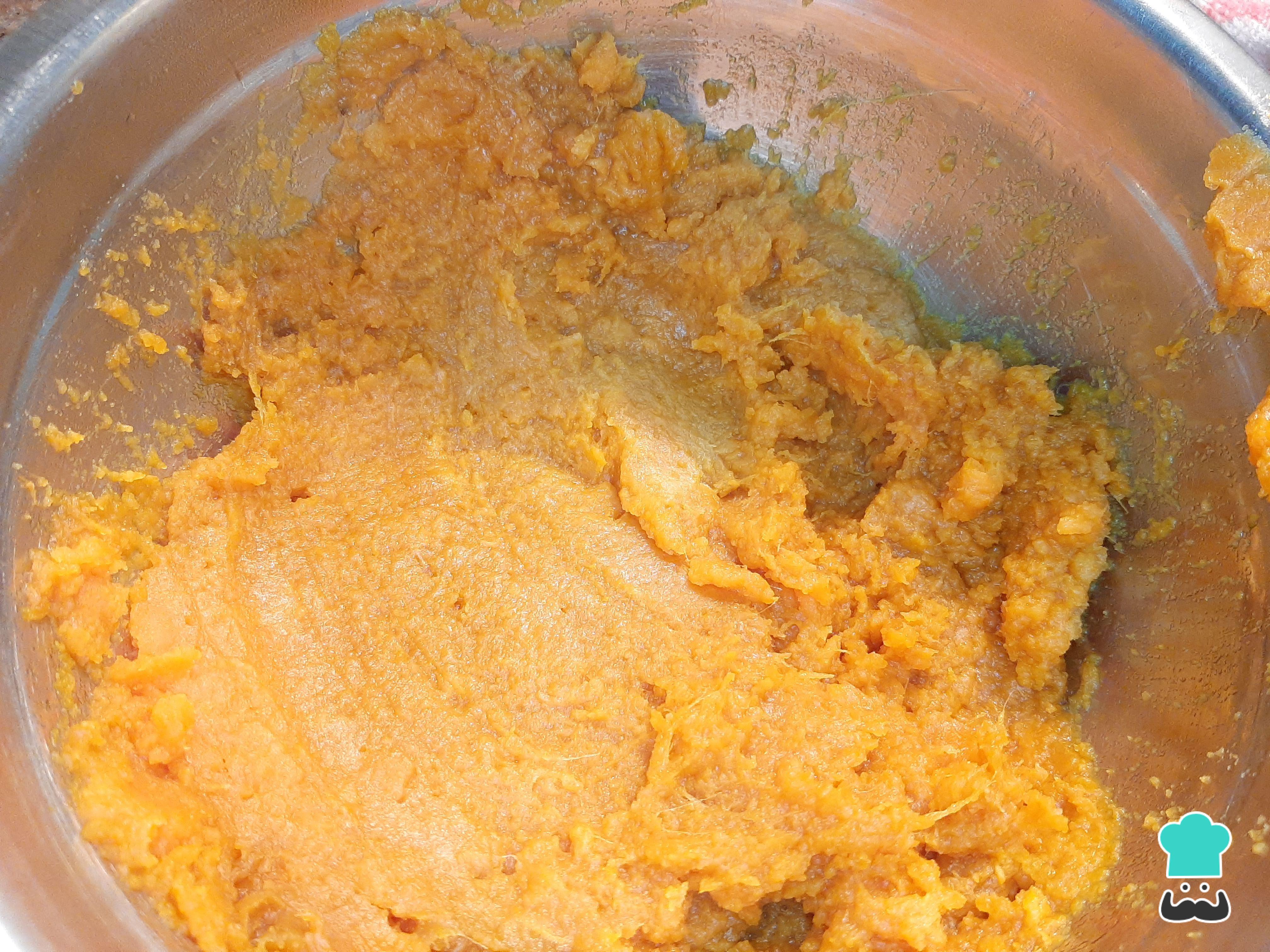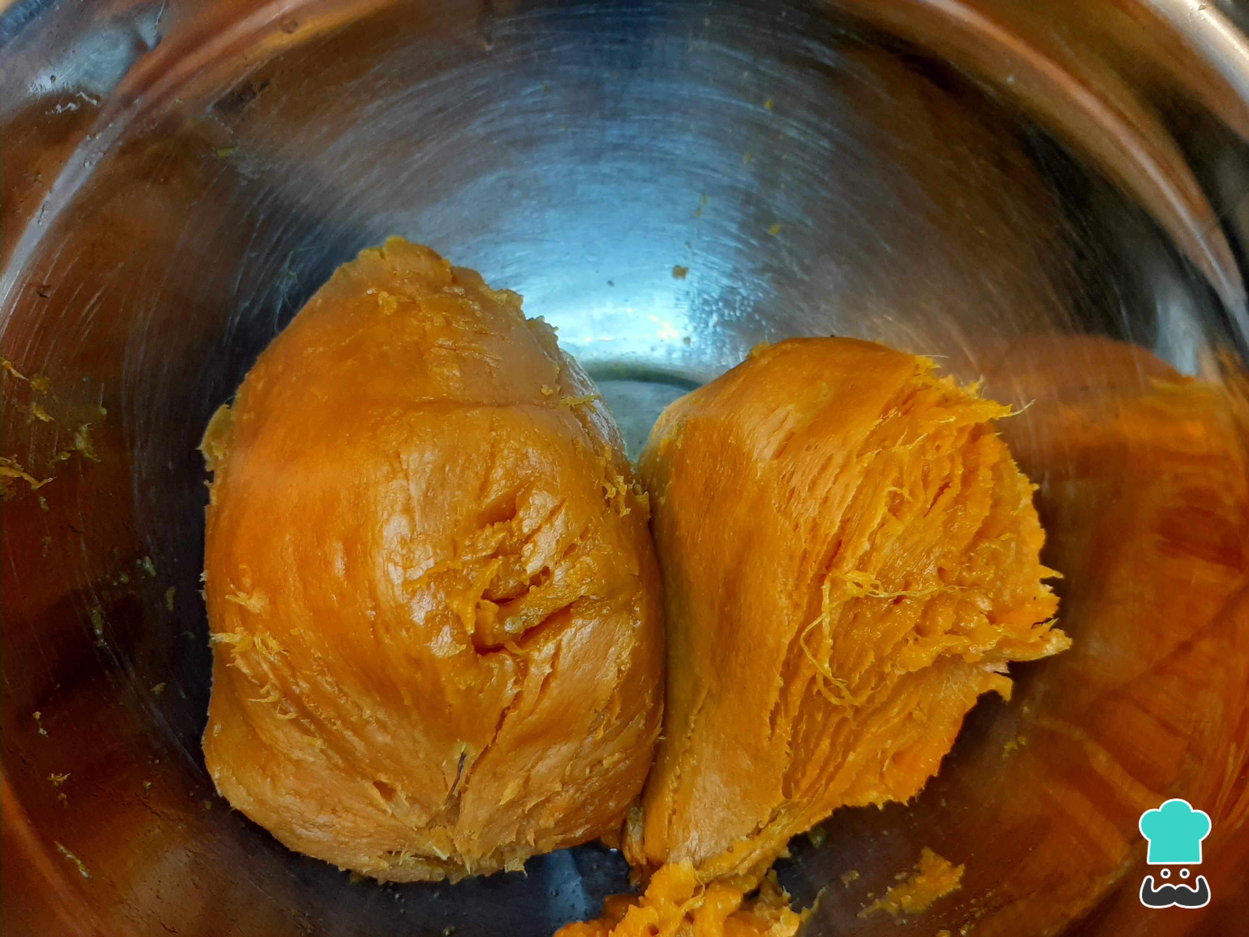 Con la ayuda de un tenedor o de una prensa de papas, elabora un puré con los camotes.
