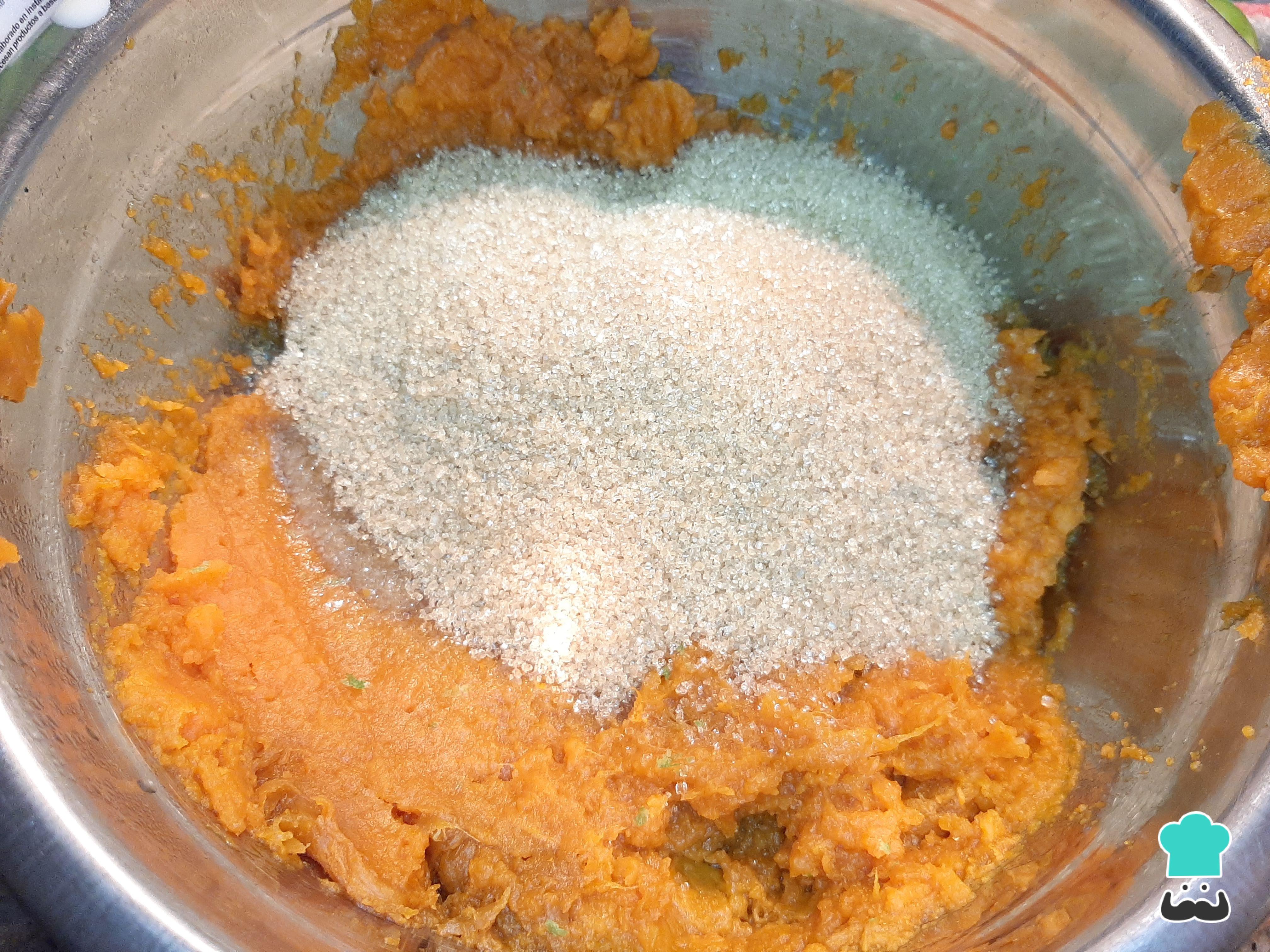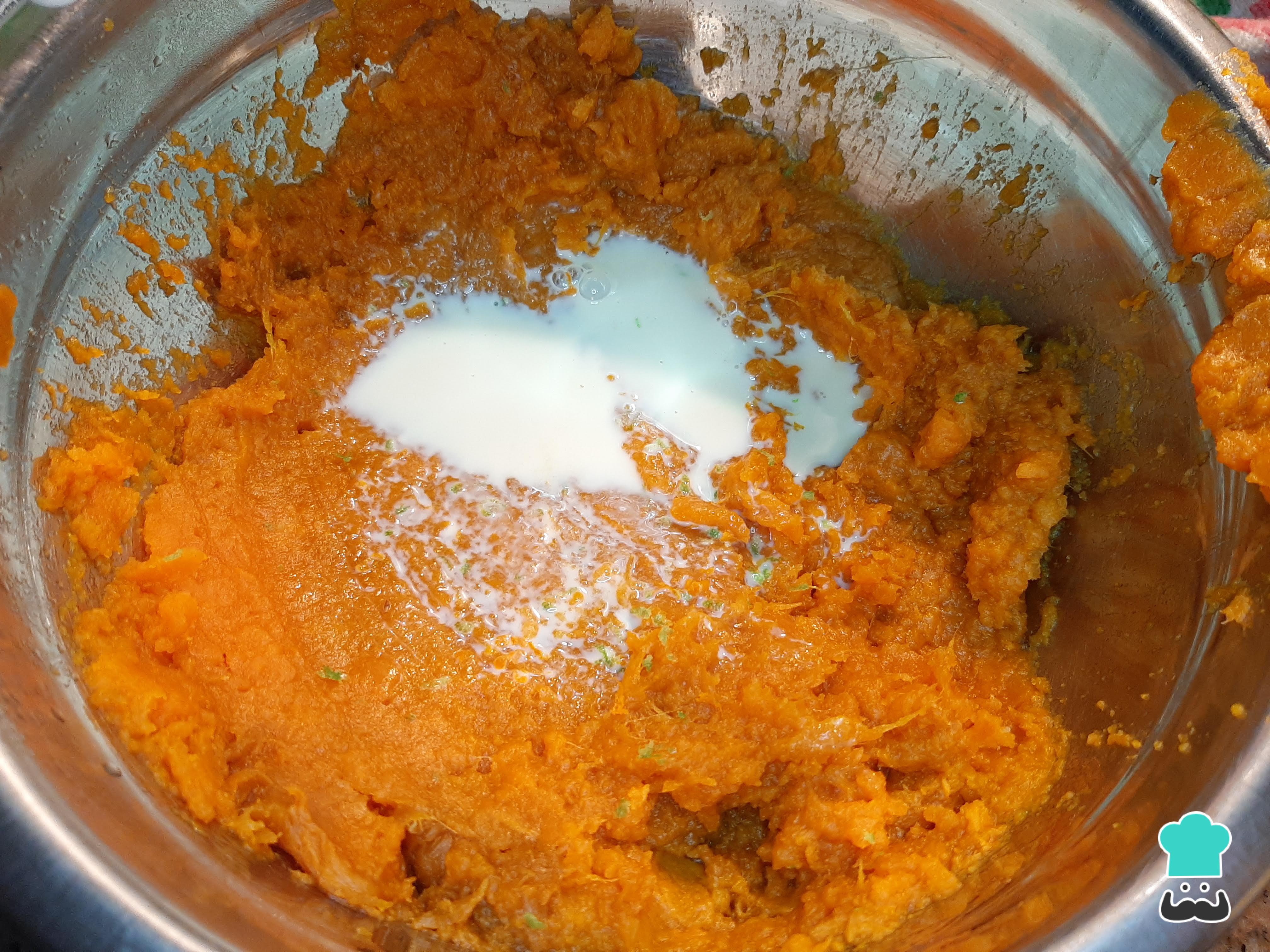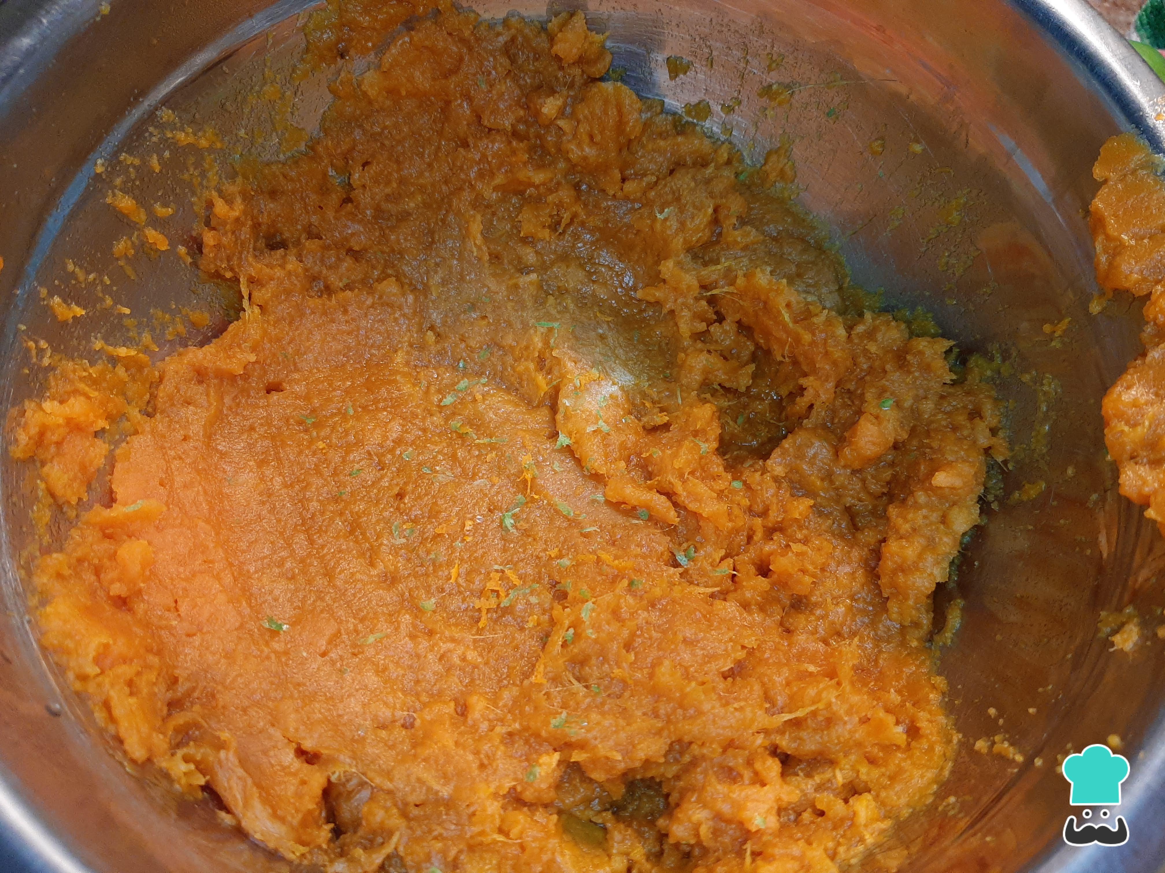 Con la ayuda de un tenedor o de una prensa de papas, elabora un puré con los camotes.