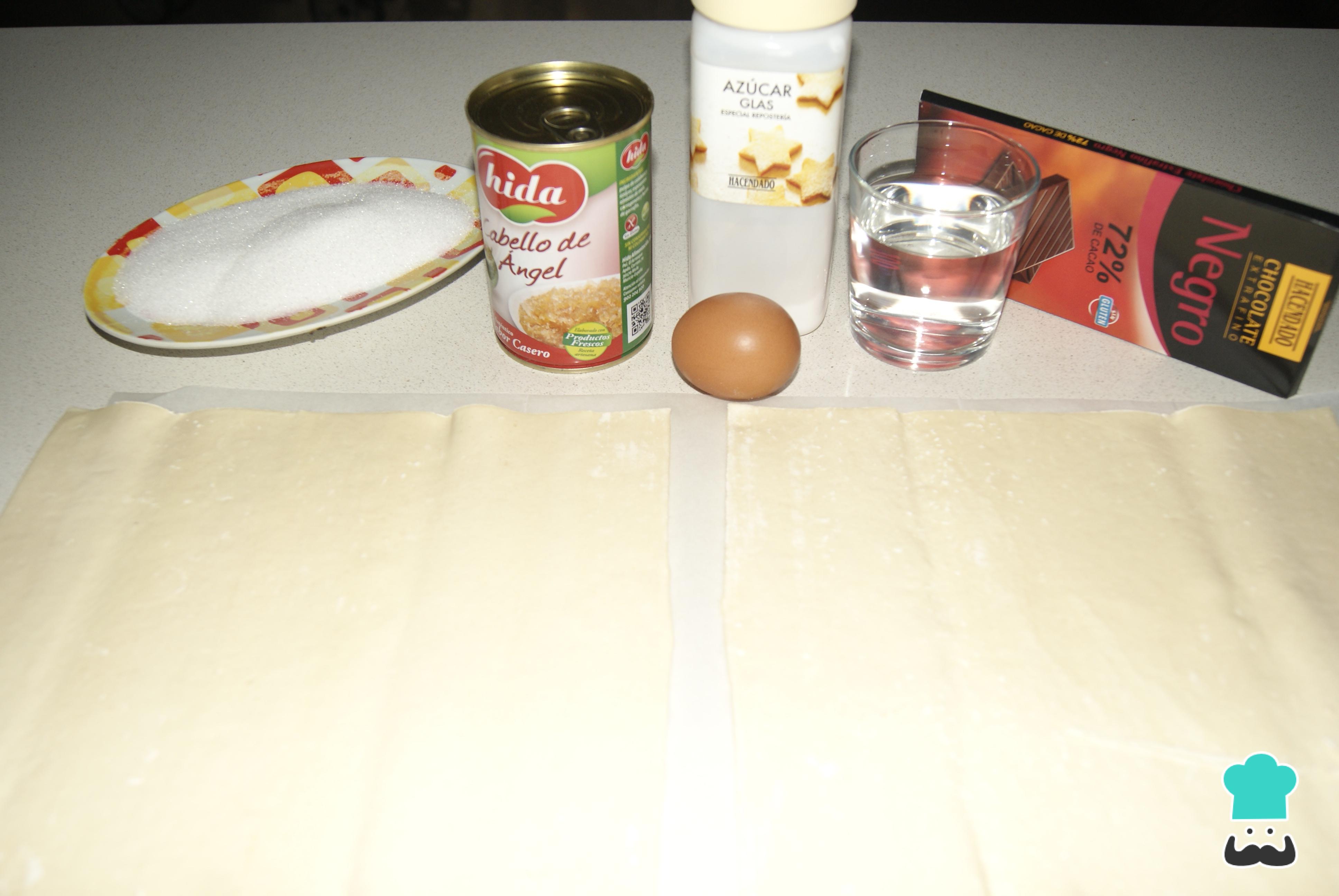 Como en todas nuestras recetas, empezamos por alistar los ingredientes en la mesa de trabajo. Si quieres hacer el hojaldre tu mismo, puedes seguir la receta paso a paso de masa de hojaldre casera.
