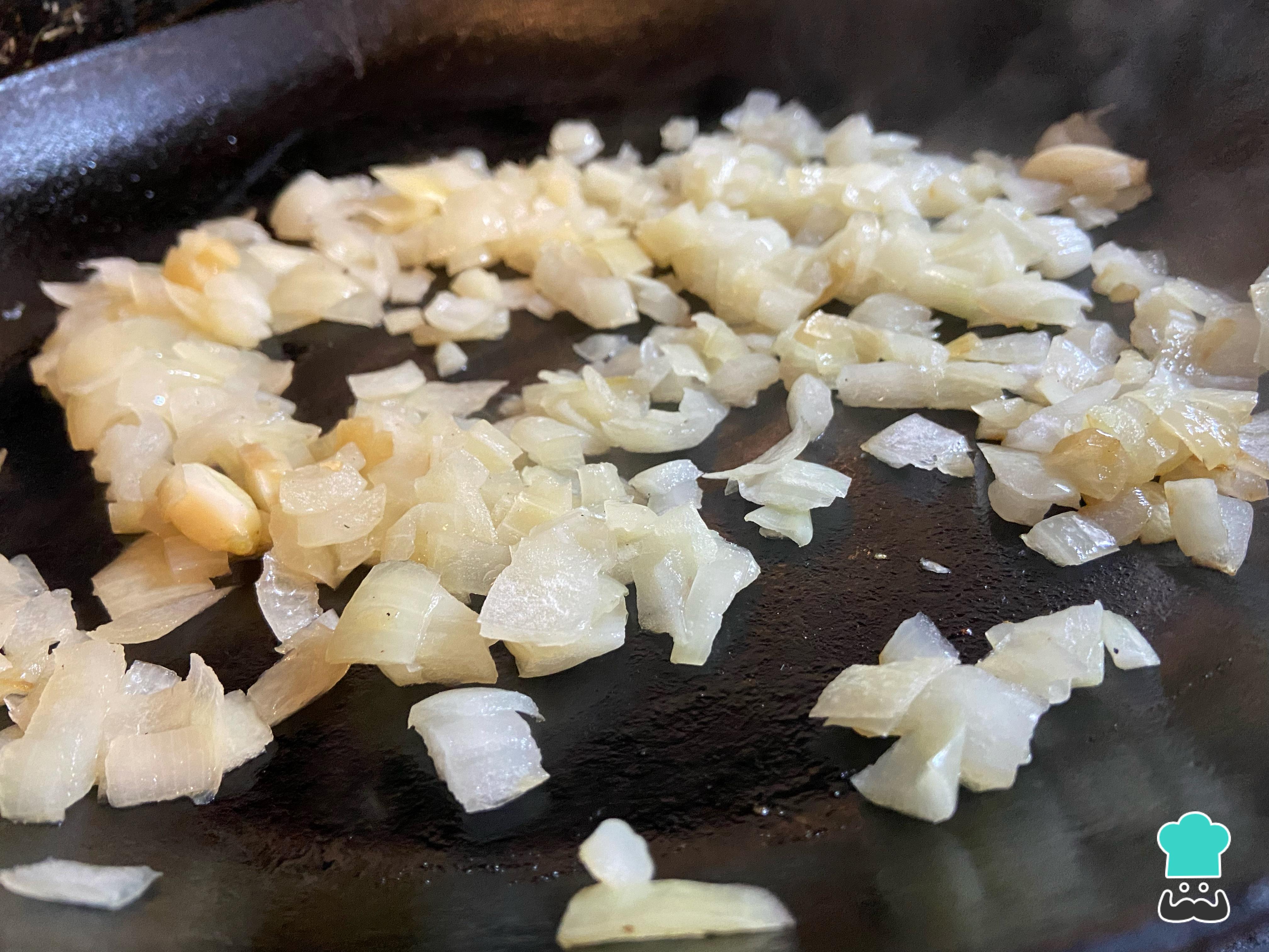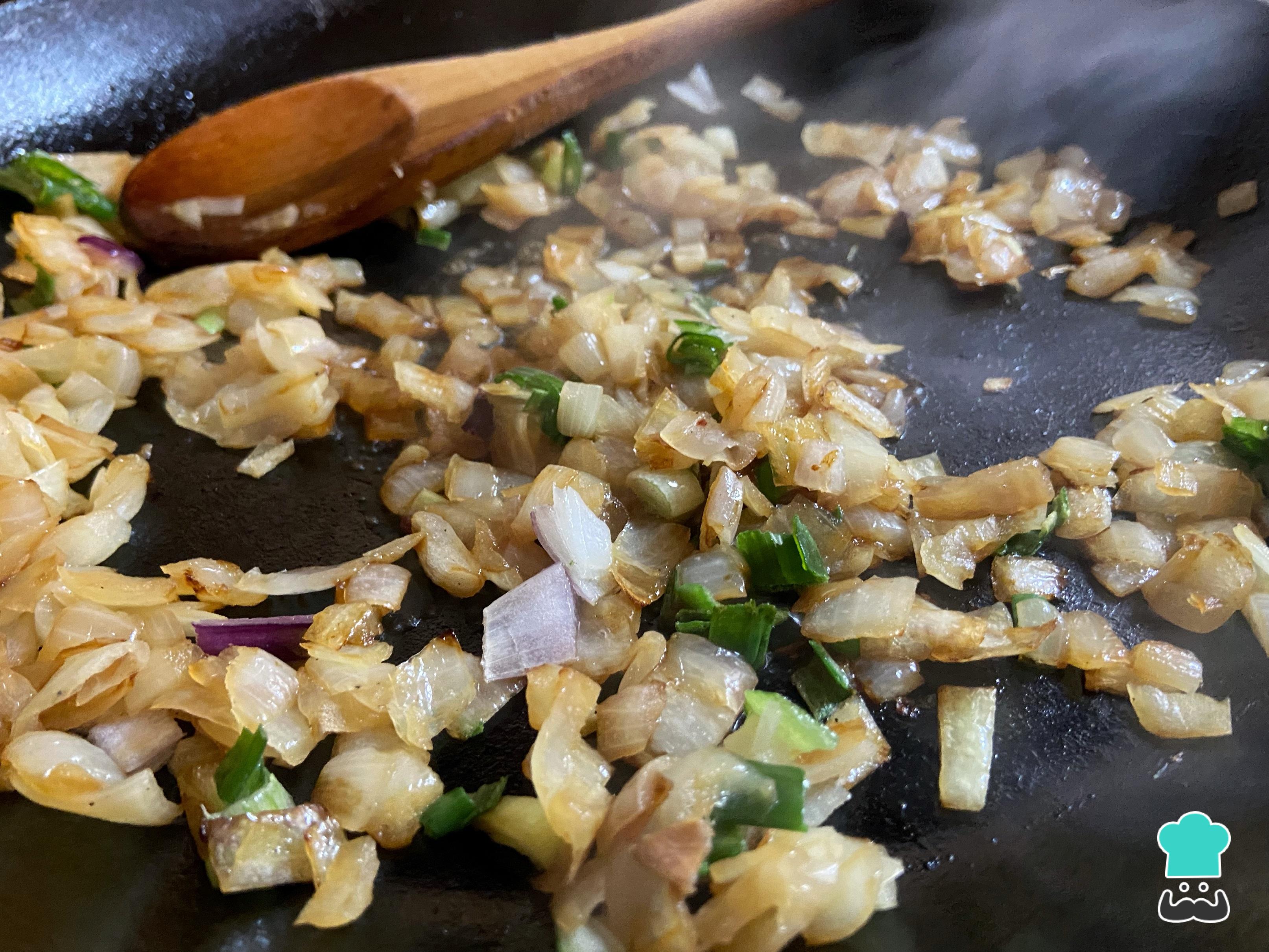 Para empezar con la receta de canastitas de cebolla y queso, primero debes caramelizar las cebollas con sus propios azúcares. Para ello, pélalas y pícalas en cubos pequeños. A continuación, saltea en una sartén a fuego máximo con 1 cucharadita de aceite hasta que empiece a transparentarse. En este momento, baja el fuego al medio y agrega 1 cucharada de agua caliente. Repite este procedimiento cada vez que se sequen, teniendo en cuenta que, cuantas más veces lo hagas, más dulce quedará.