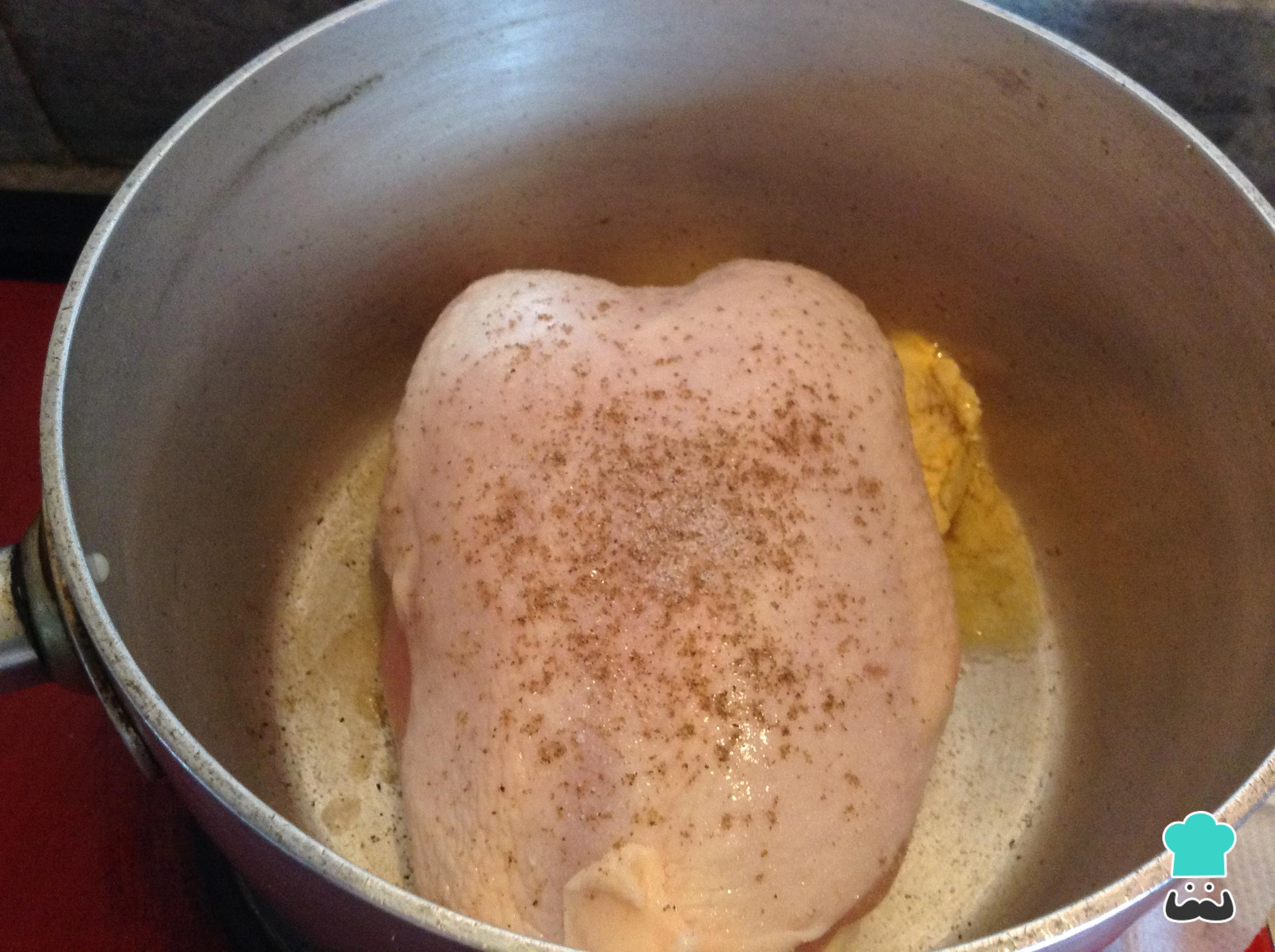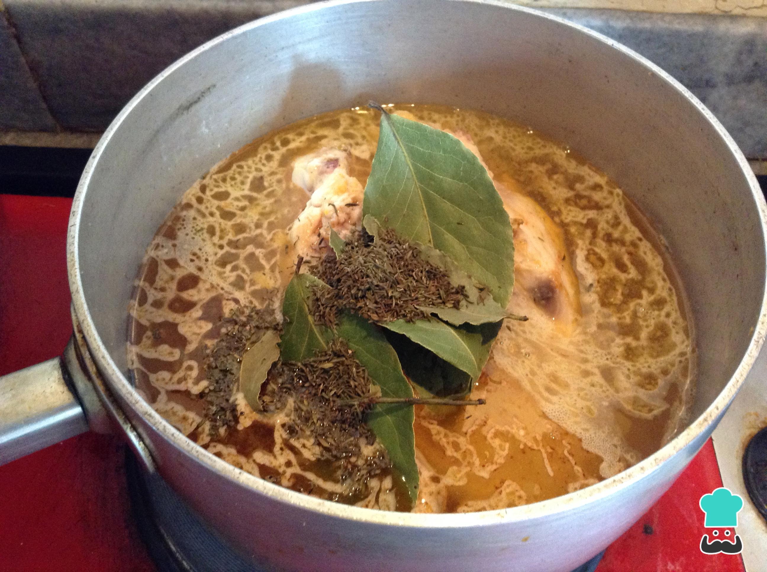 Importante reservar el caldo que sobro de la cocción de las pechugas para realizar la salsa de nuestros canelones de pollo en salsa roja.