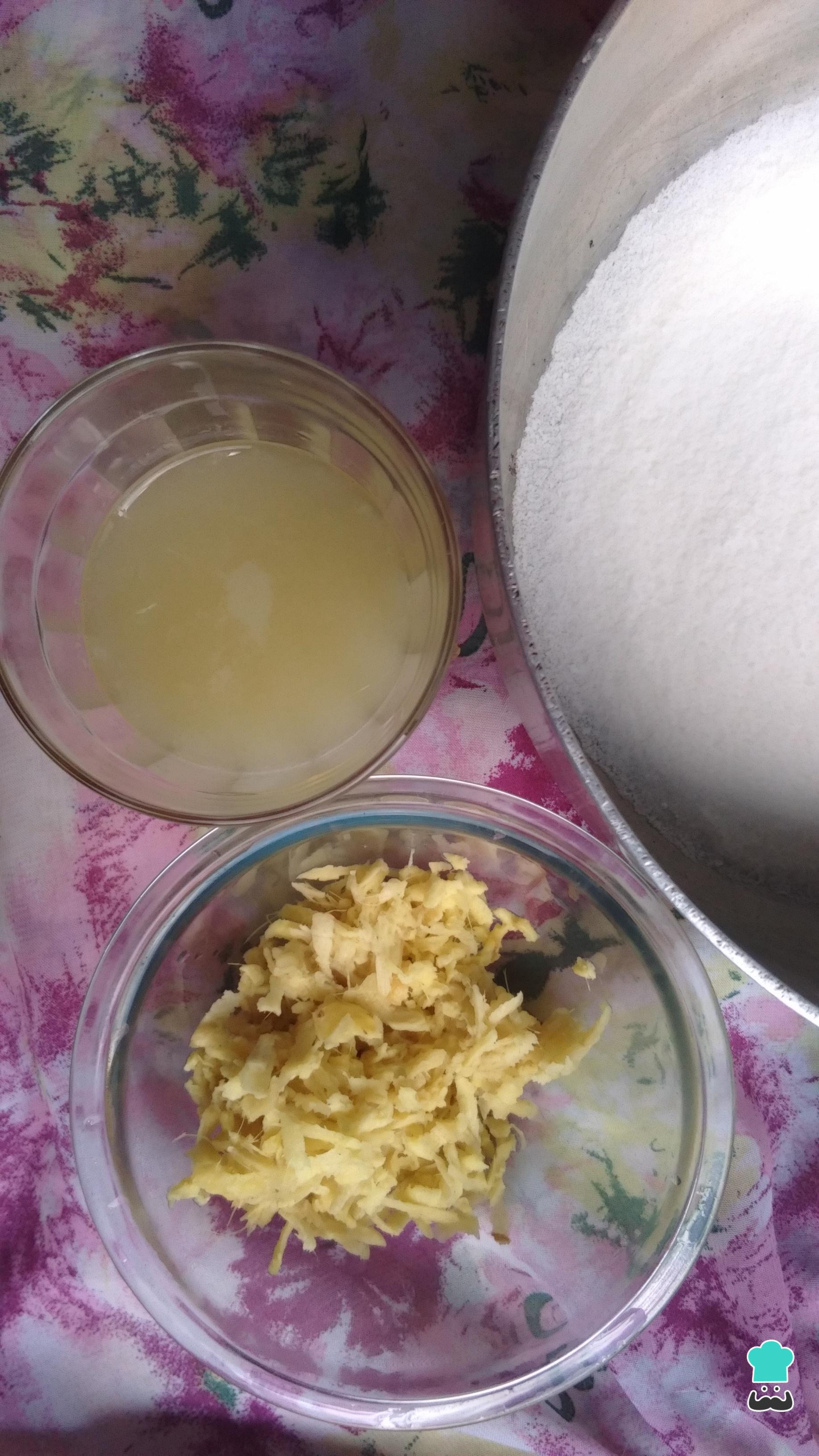 En una olla, reúne el azúcar, el jengibre rallado y el jugo de limón. Mezcla muy bien hasta integrar todos los ingredientes.