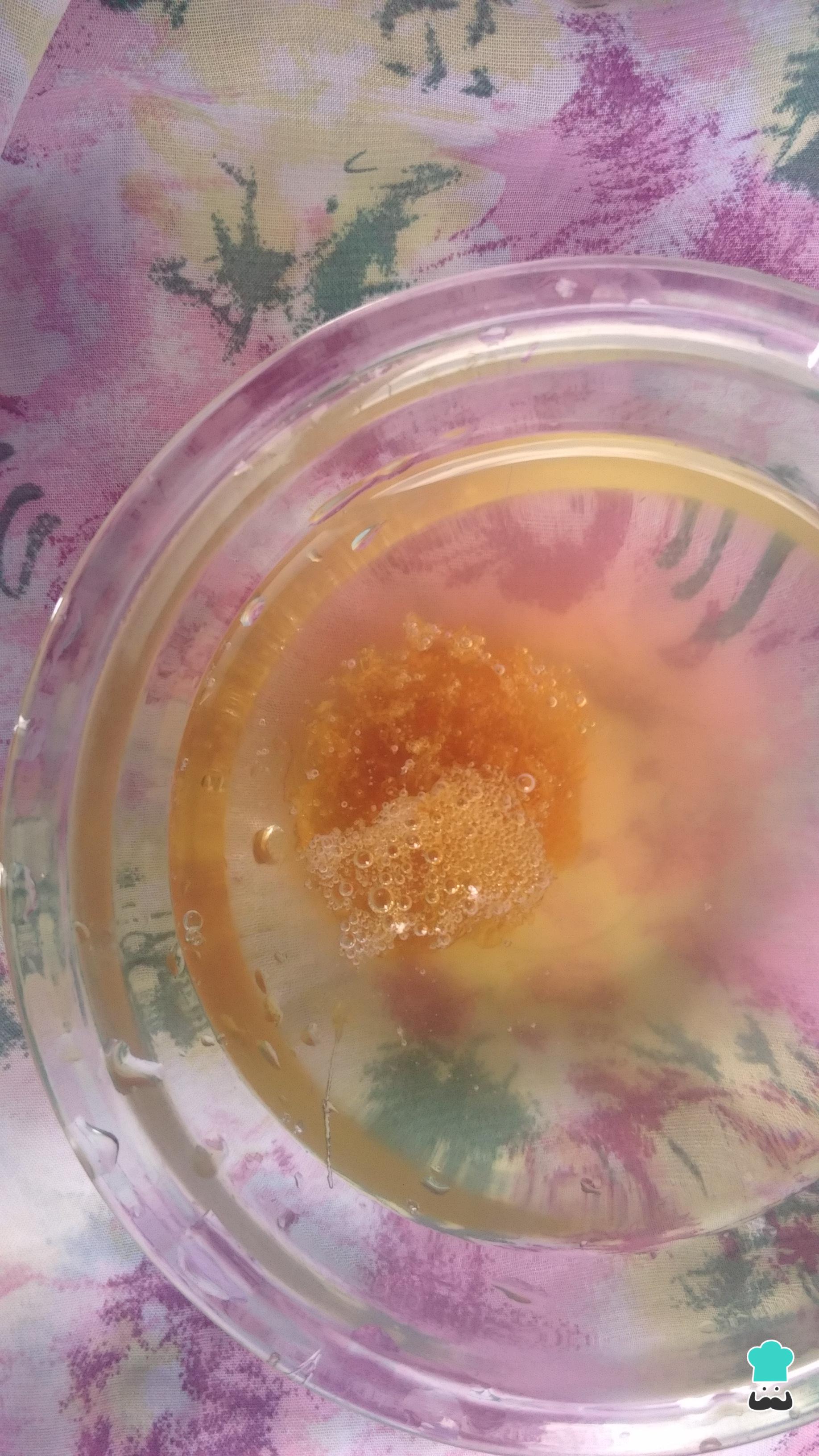 Para saber si el caramelo está en su punto, vierte una cucharada de la mezcla en un poco de agua a temperatura ambiente.