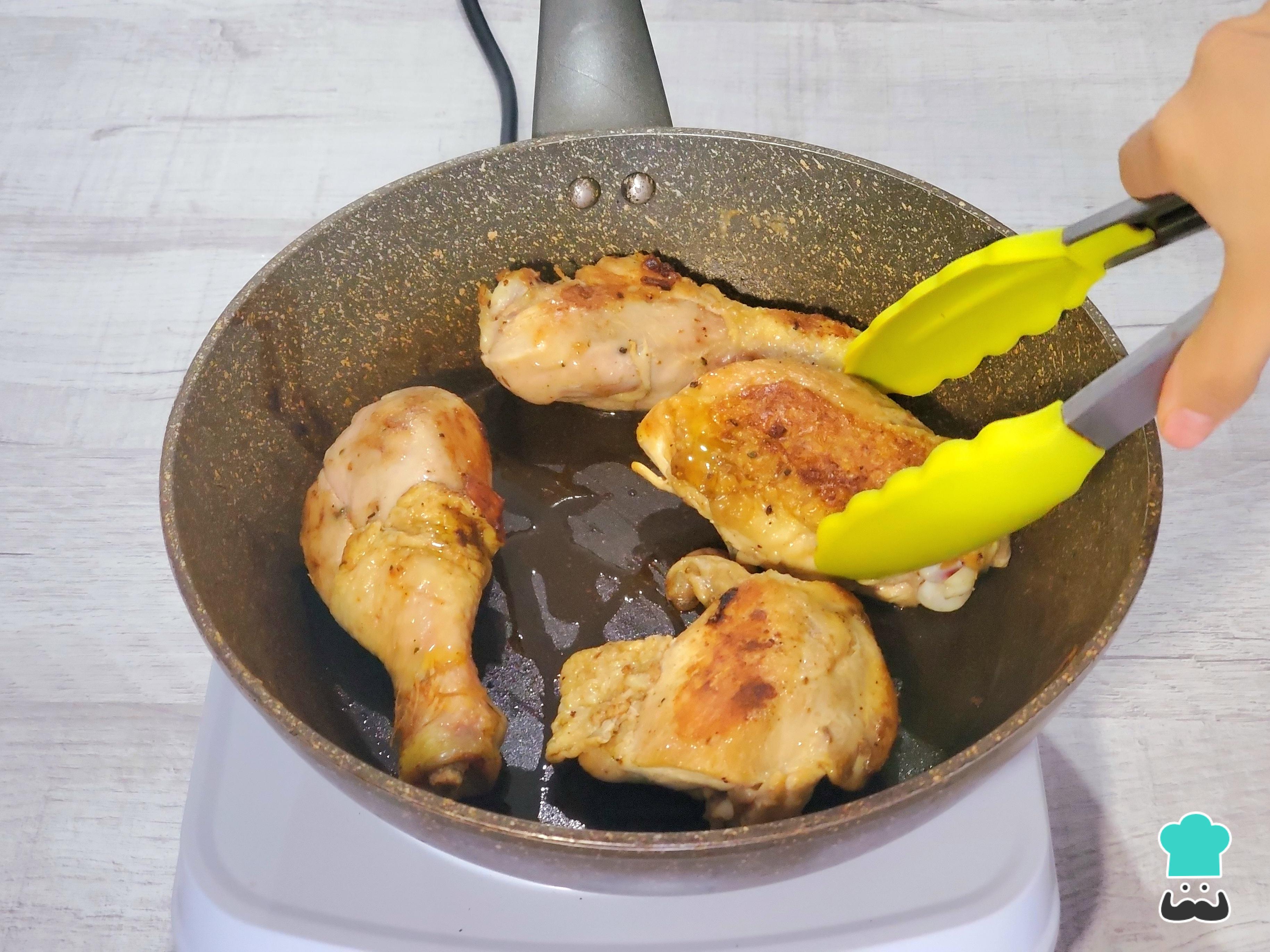 En una olla o sartén profunda calienta un buen chorro de aceite y dora las piezas de pollo cuidadosamente, piernas y encuentros previamente salpimentados, hasta que estén doradas por ambos lados. Retíralas y resérvalas aparte.
