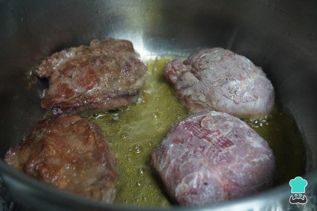 Cuando el aceite esté caliente, añade las carrileras y sella por los dos lados. Luego, retira y reserva.