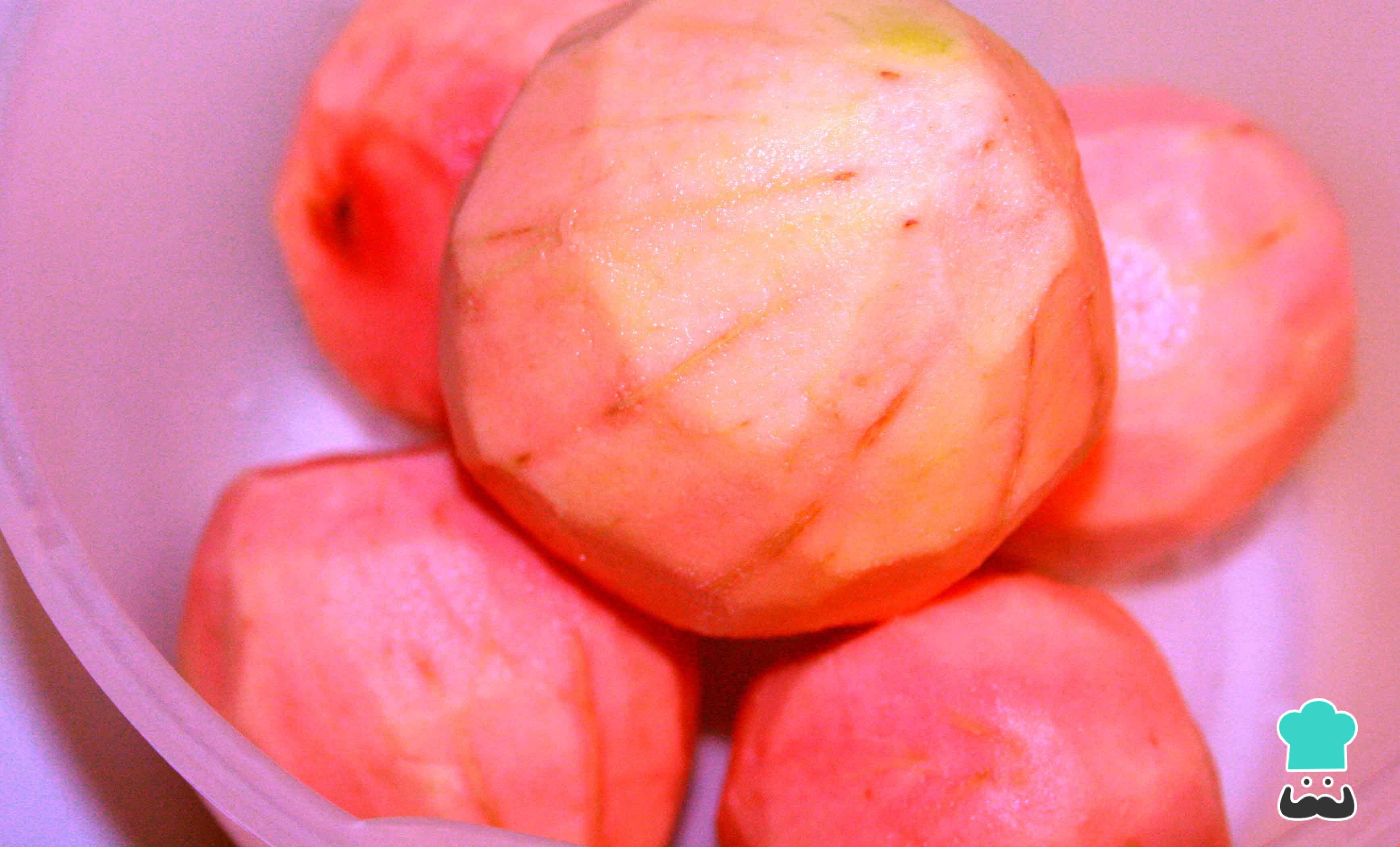 Cuando tengas todo listo en la cocina para hacer este rico dulce de guayaba casero, empieza por retirar las cáscara de las guayabas con un cuchillo o un pelador de papas.