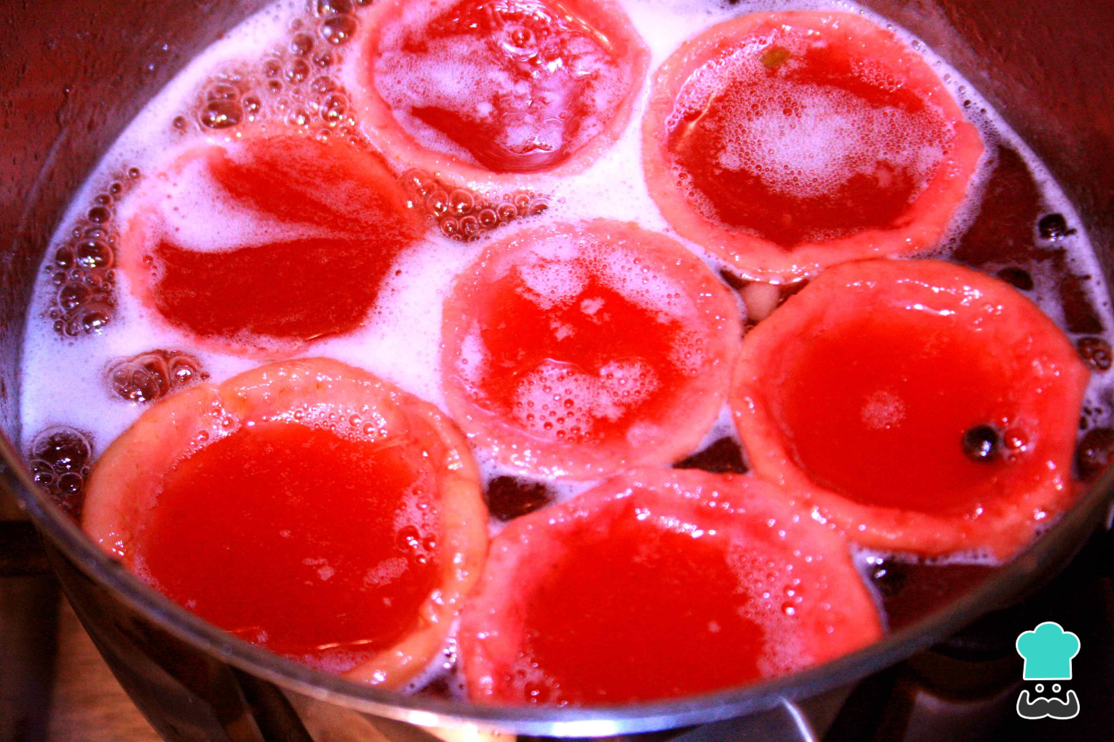 Seguidamente, incorpora los cascos de guayaba en la olla y deja se cocinen con el almíbar hasta que estén tiernos. Este proceso dura aproximadamente unos 45 minutos.