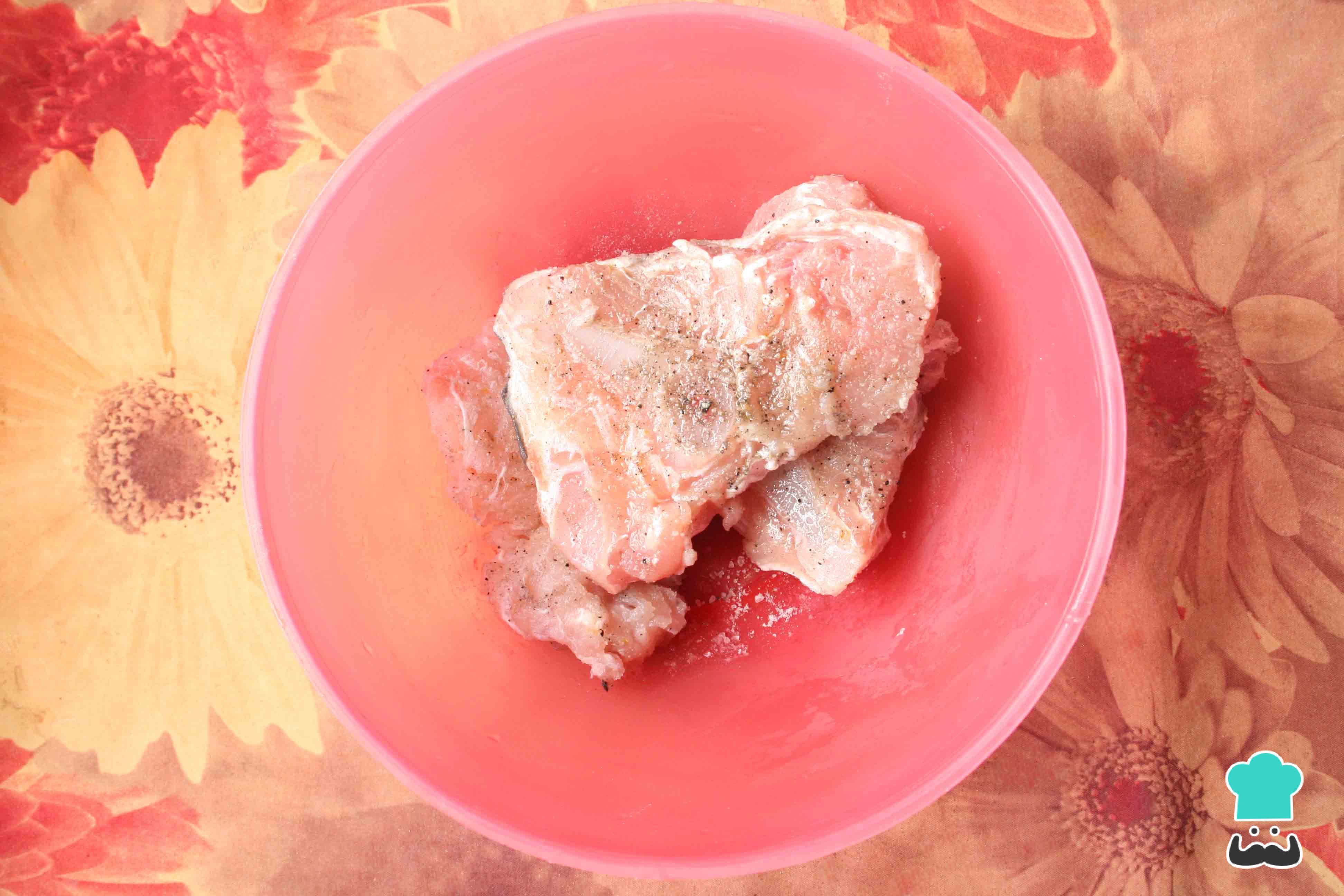Limpia el pescado. Luego introduce la ruedas dentro de un bol profundo, salpimienta y reserva.