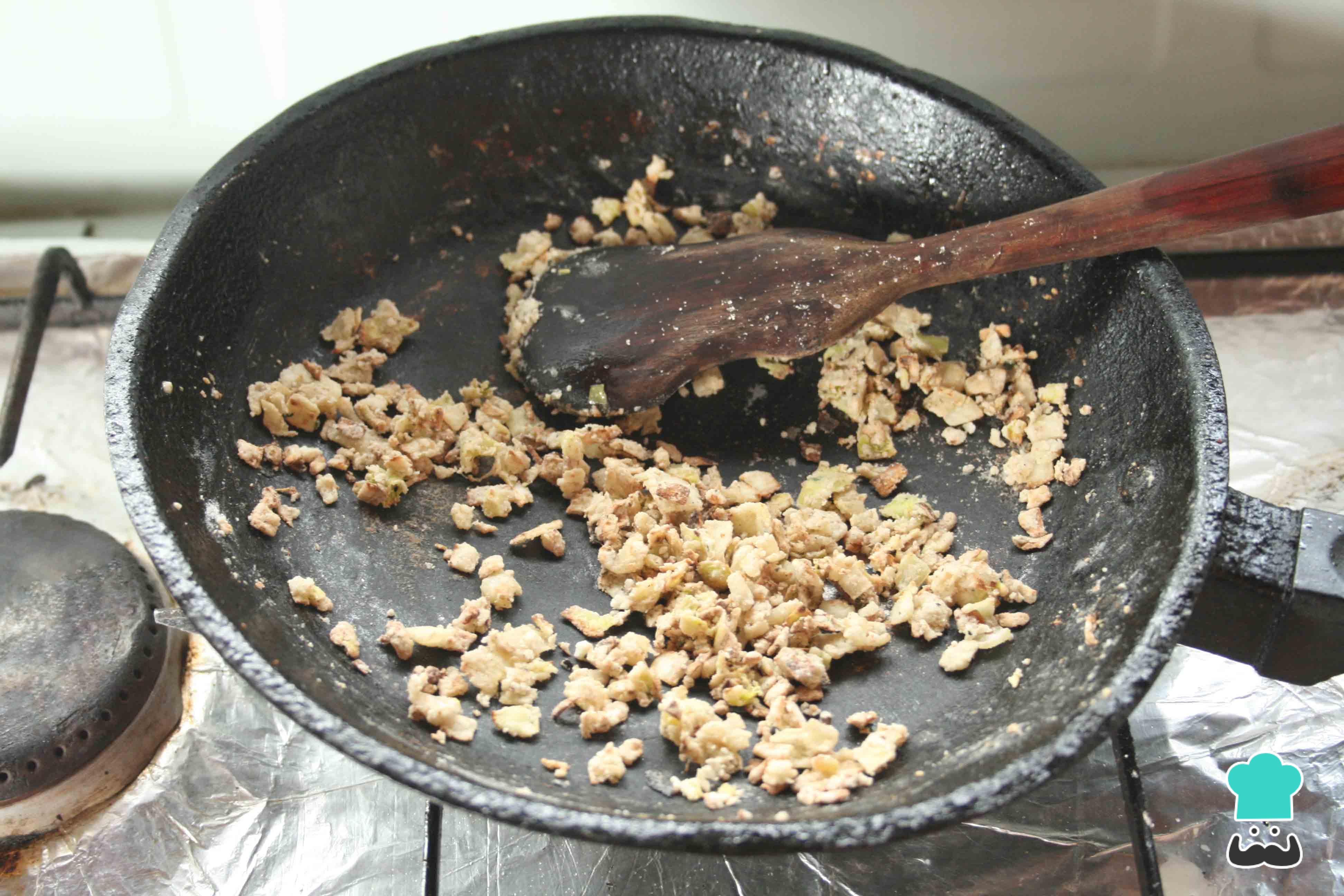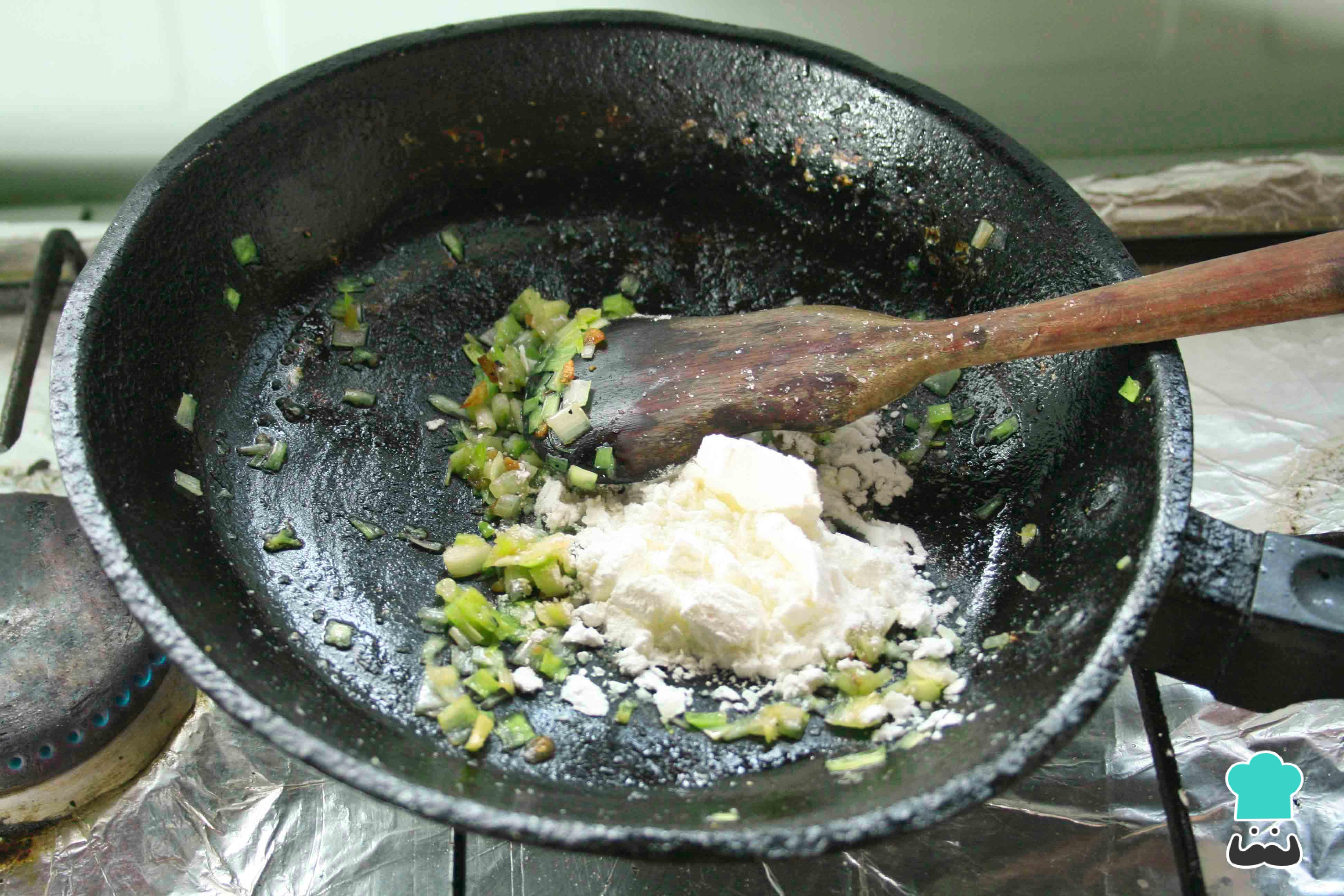 Cuando las cebolletas se vean casi transparentes agrega la harina.