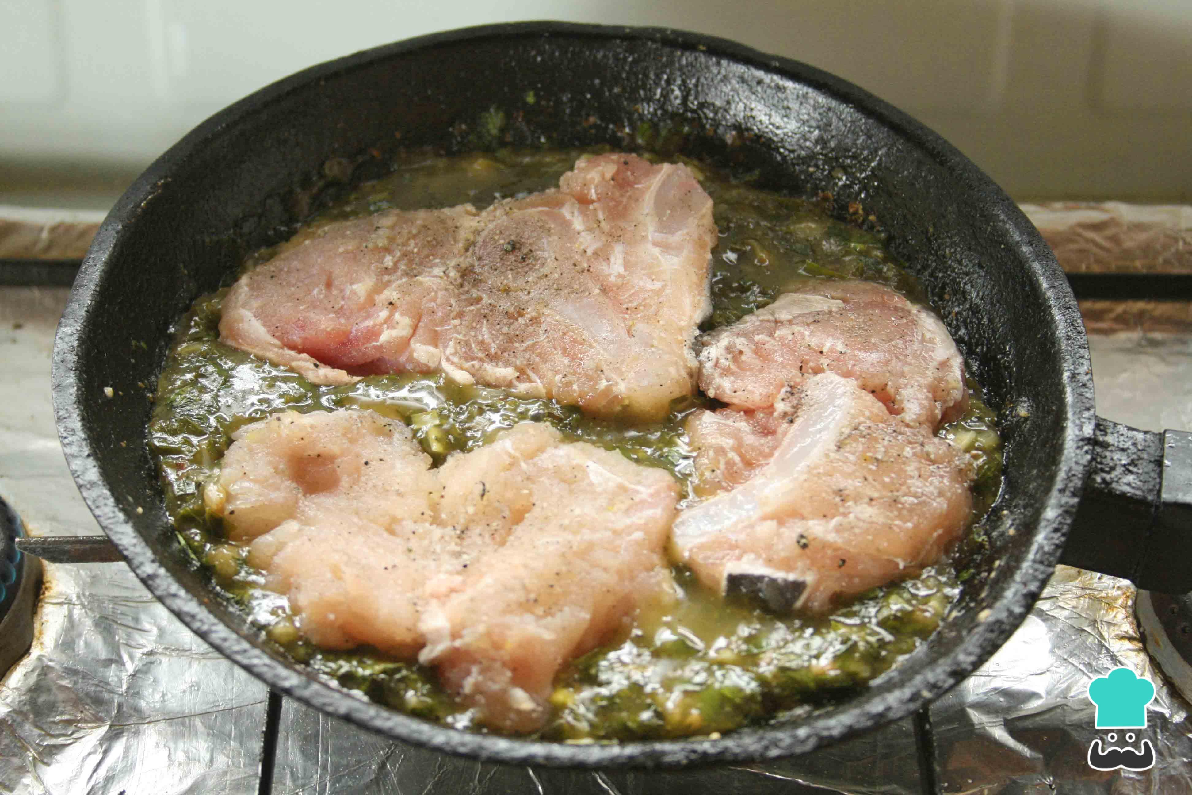 Agrega el vino y espera un minuto, antes de incorporar el agua. Salpimienta la salsa verde y espera hasta que reduzca. Cuando la salsa del cazón guisado espese añade el perejil.