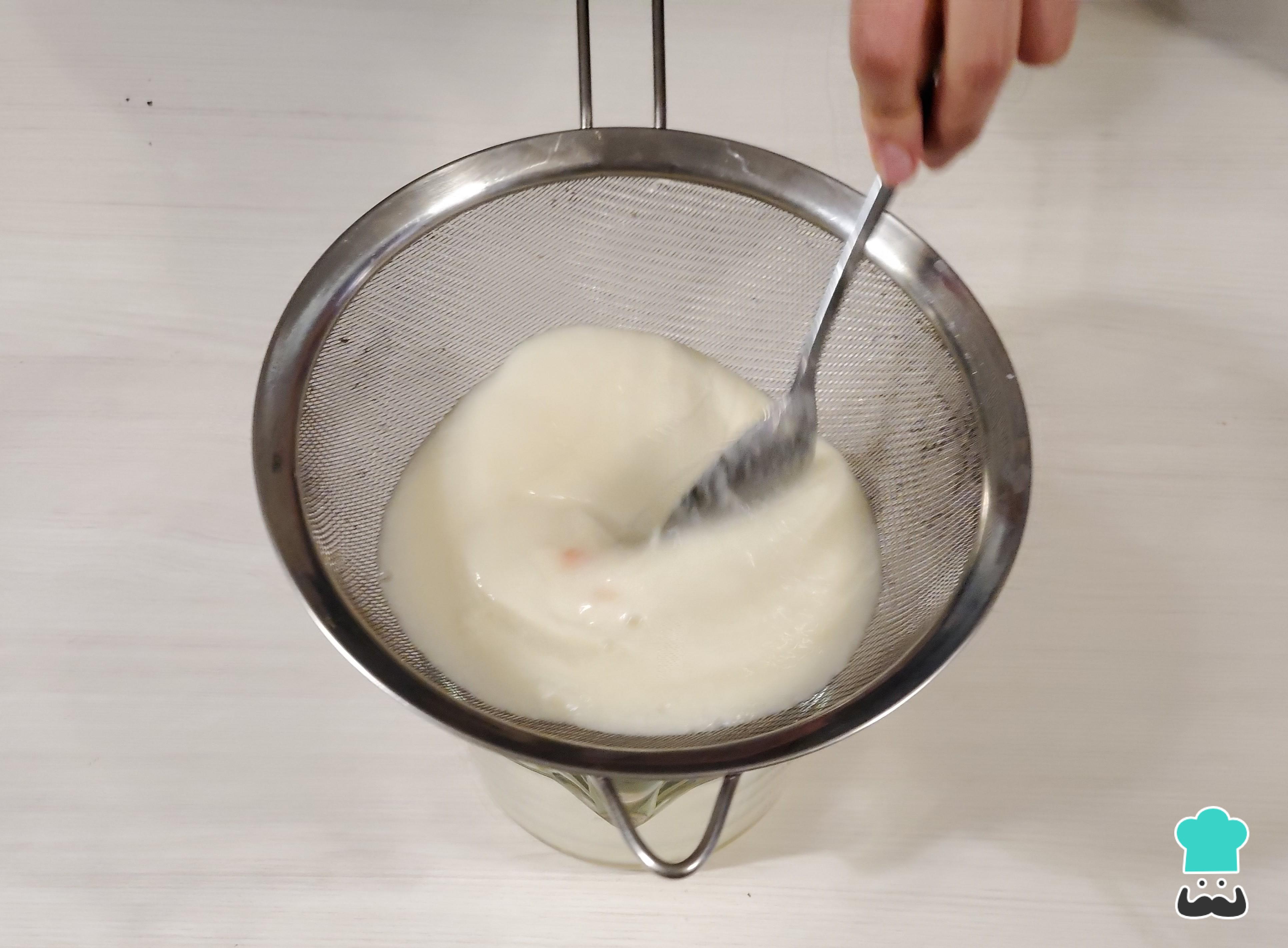 Licúa durante 30 segundos hasta obtener una mezcla homogénea, luego cuela para eliminar los sólidos.