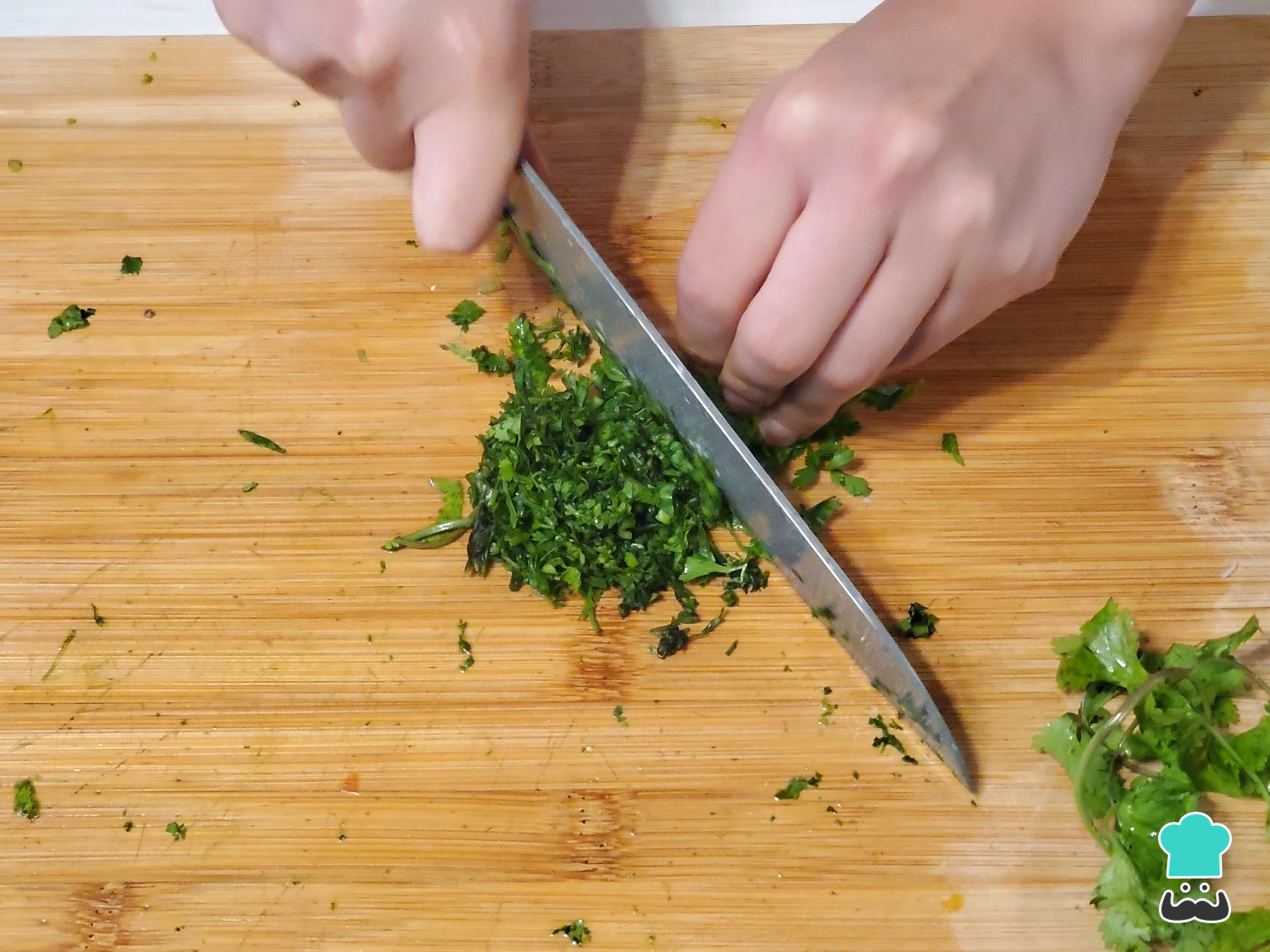 También pica finamente el culantro y exprime los limones.