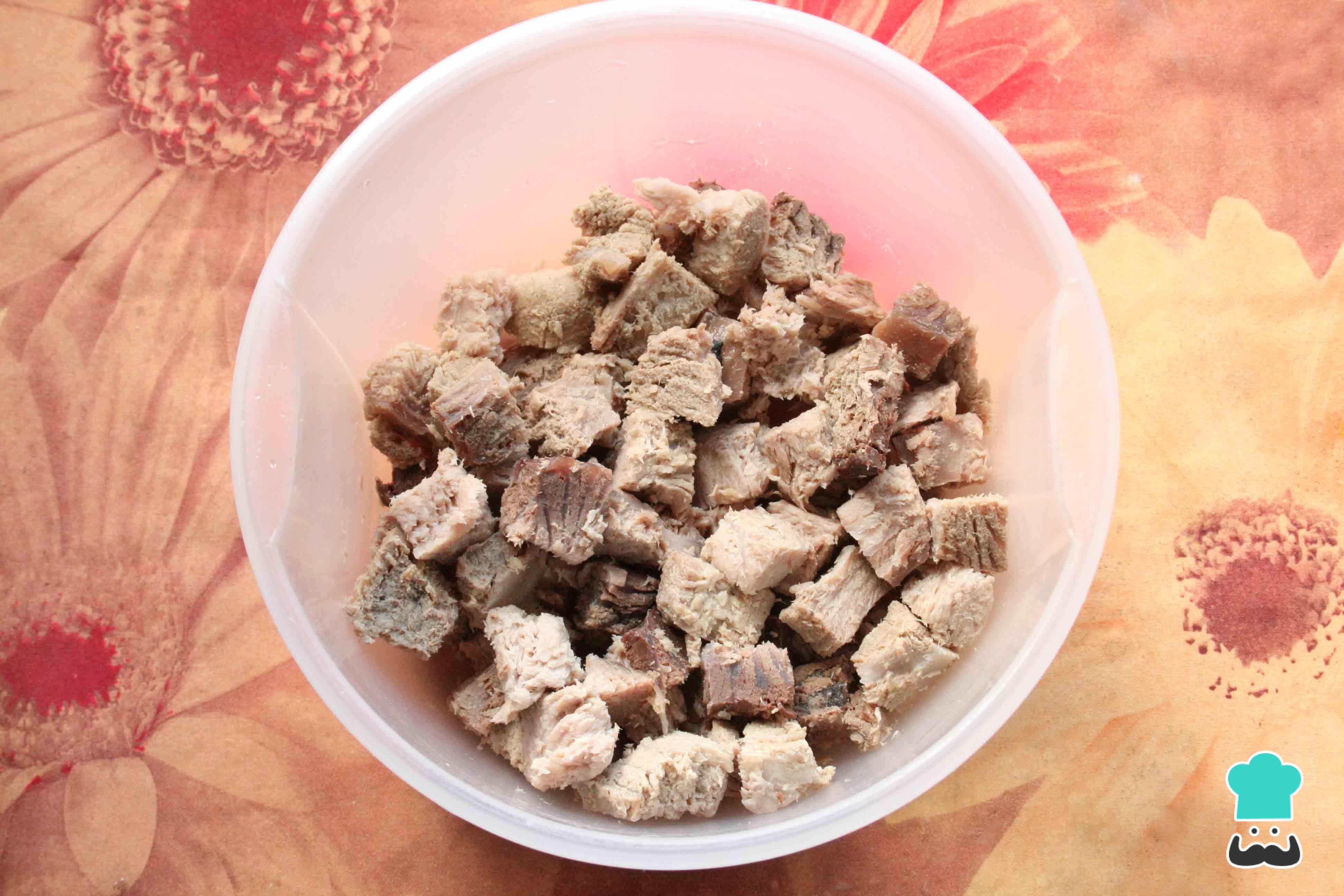 Hierve el pescado blanco durante 2 horas, retira del fuego y escurre. Luego, deja que la carne se ambiente y procede a picarla en cubos. Reserva dentro de un bol. Nosotros hemos utilizado cazón, pero tú puedes hacer el ceviche de pescado blanco con el que más te guste o tengas a mano.