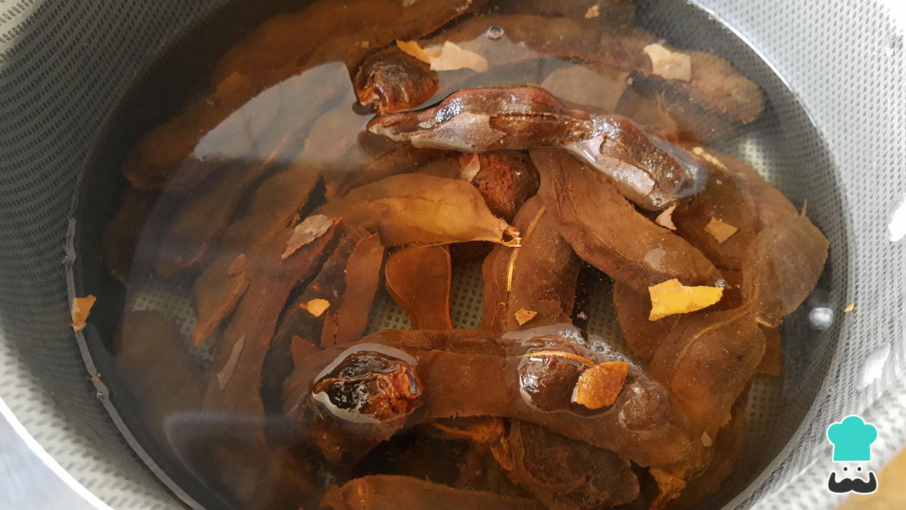 Comienza la preparación de la chamoyada de tamarindo limpiando las vainas, no importa si les queda un poco de cáscara. Luego, introdúcelas en una olla con suficiente agua y deja que hiervan por al menos 10 minutos. Este paso es importante para que se suavice el tamarindo y sea más sencillo licuarlo.