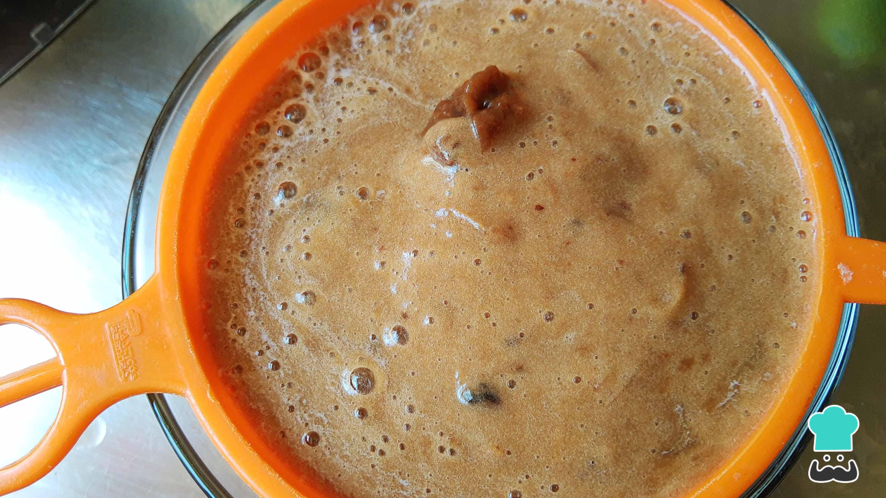 Como se licuó el tamarindo con sus semillas, debes pasarlo por un colador para quitar las semillas molidas, ya que pueden ser difíciles de digerir.