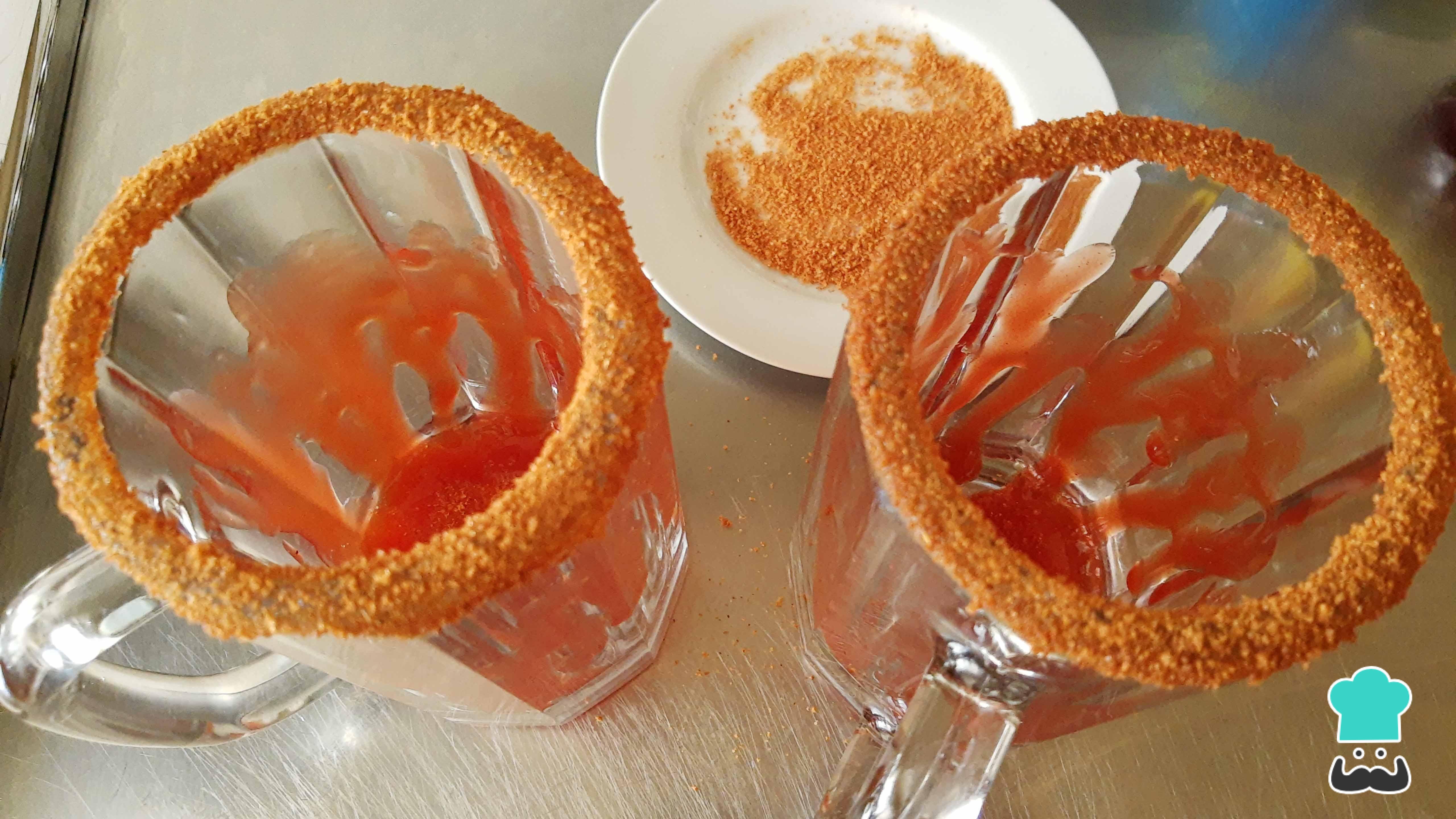 Escarcha tus vasos con un poco del mismo concentrado de tamarindo o con jugo de limón y con chile en polvo. También agrega chamoy al gusto dentro de cada vaso.