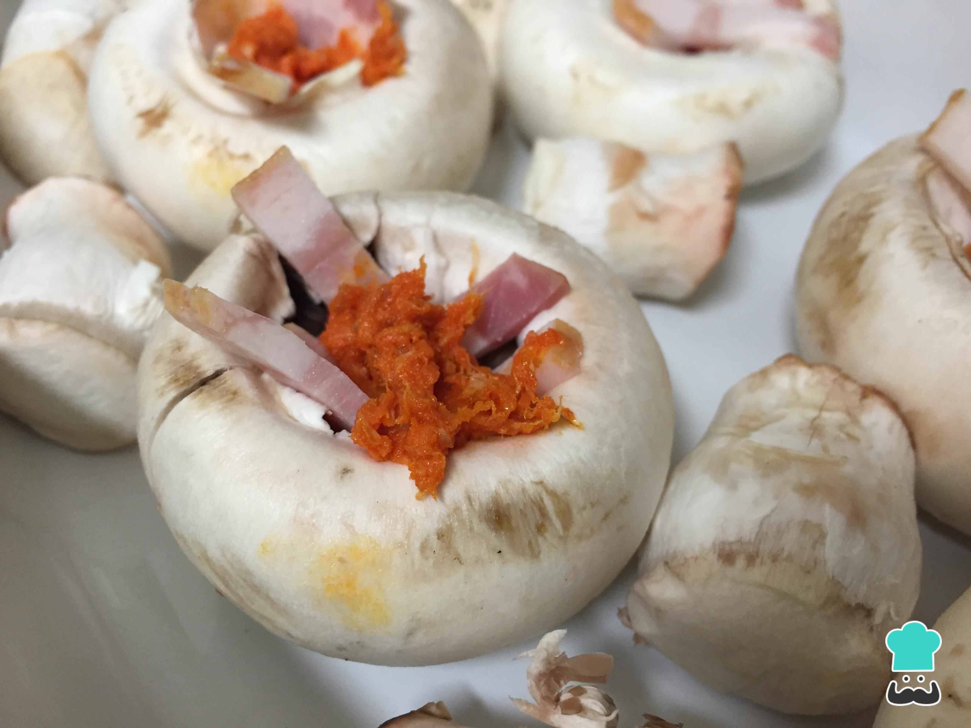 Para dar un toque extra a los champiñones rellenos, hemos querido incorporar un poco de sobrasada. Como es opcional, si no te gusta este ingrediente simplemente elimínalo de la receta, o sustitúyelo por otro de tu agrado. Asimismo, puedes añadir queso rallado si así lo deseas.